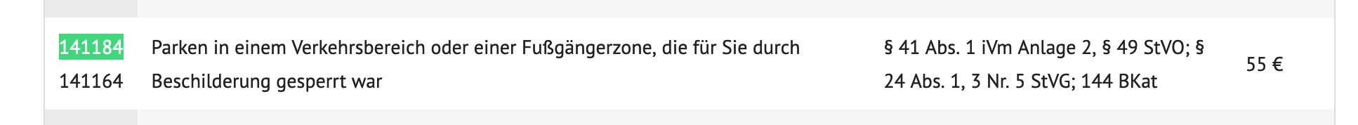 Parkverbot Tatbestand 141184