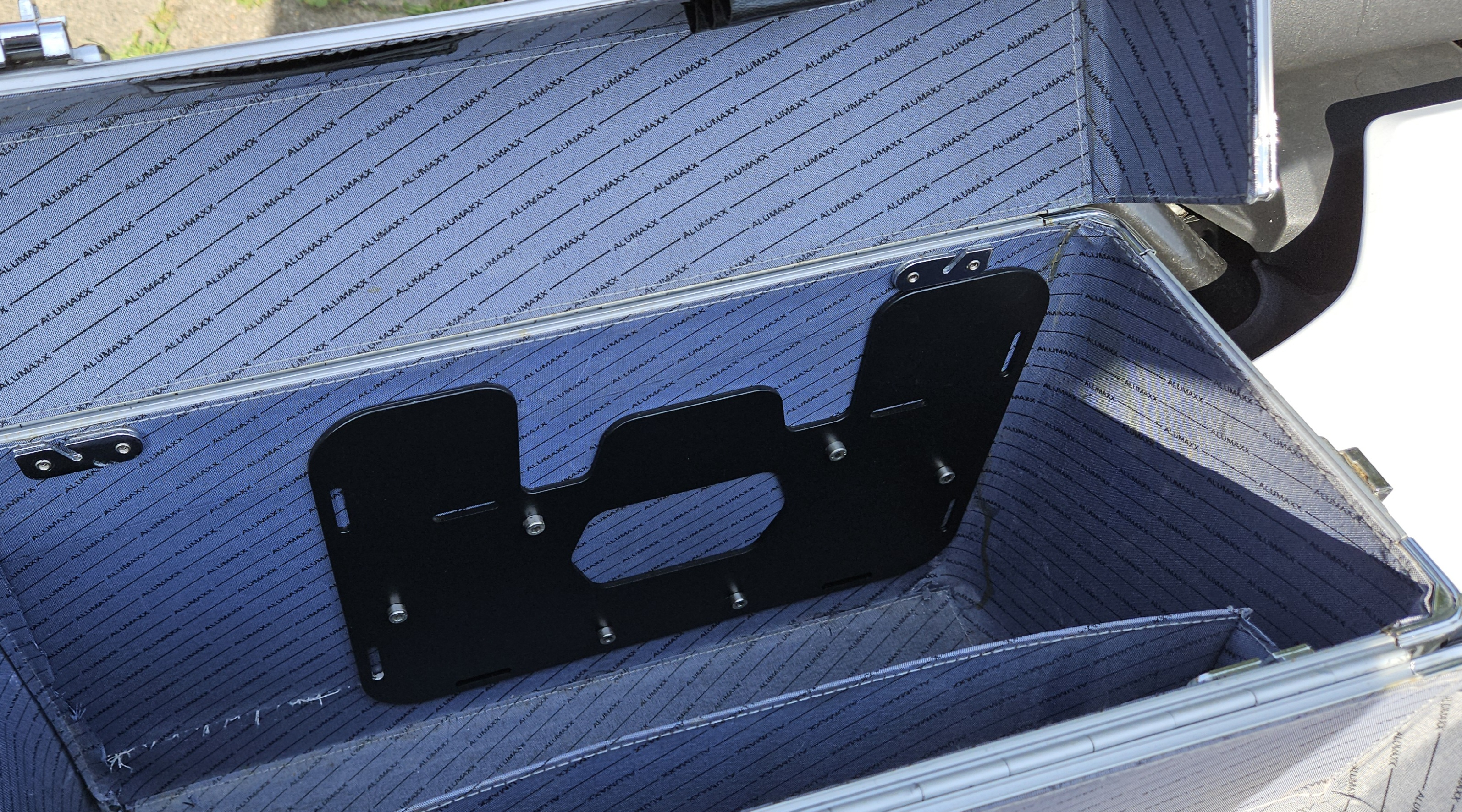 das innere Gegenstück der Kunststoff-Adapterplatte ist aus stabilem Stahlblech und wird mit insgesamt 6 Schrauben befestigt. Der Sechskant verschwindet dabei in der Adapterplatte. Alles sehr sauber und solide.