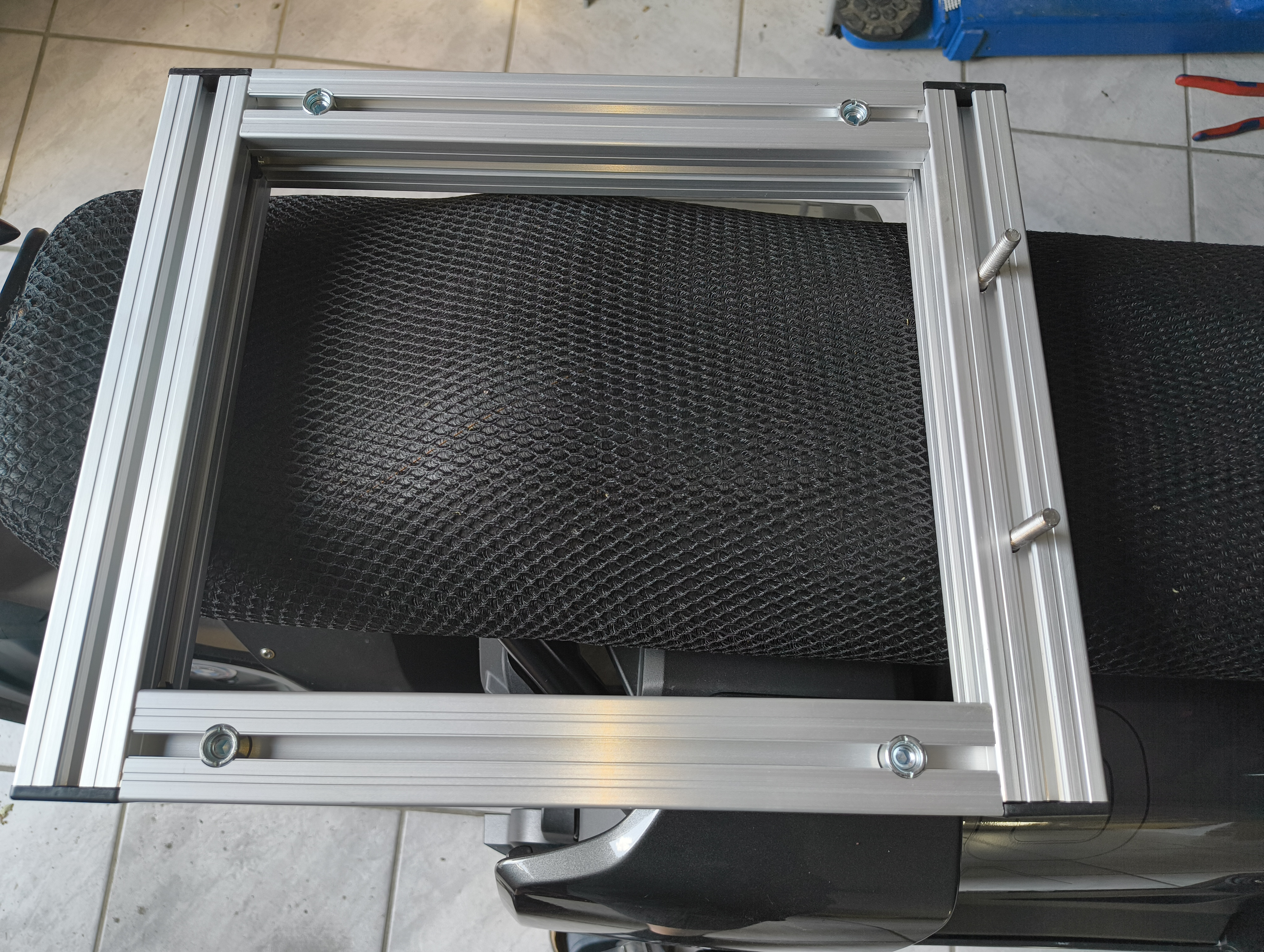 Maschinenbauprofil 40x40 angeschlagen mit 2x M8 am Heckrahmen das sollte schon halten.