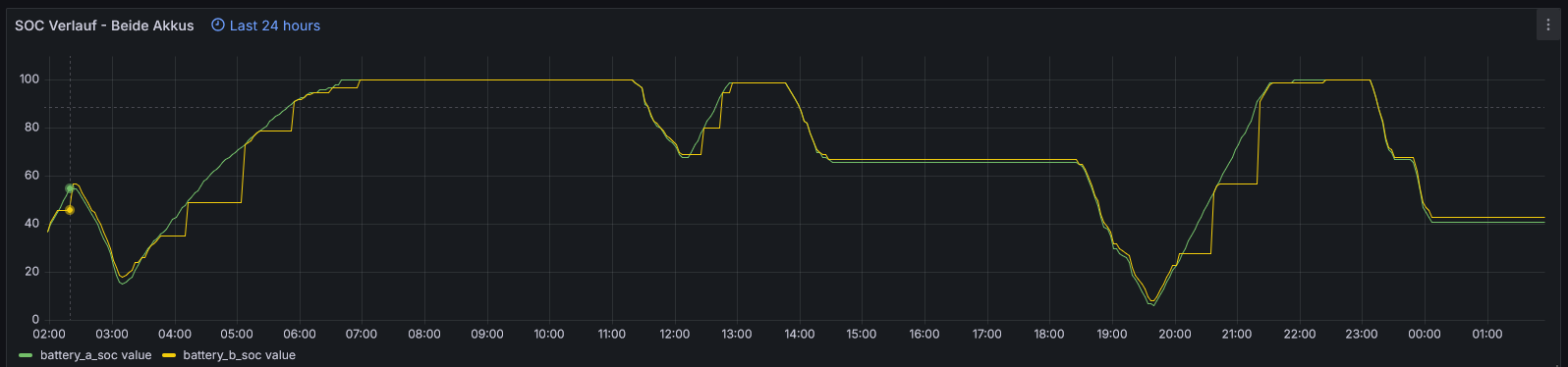zock3r1608 hat geschrieben: Mo 26. Aug 2024, 02:01 Die verzögerte Übertragung vom SOC und dass der zweite Akku immer verzögert seinen SOC reportet, wurde in der letzten Version gefixt.