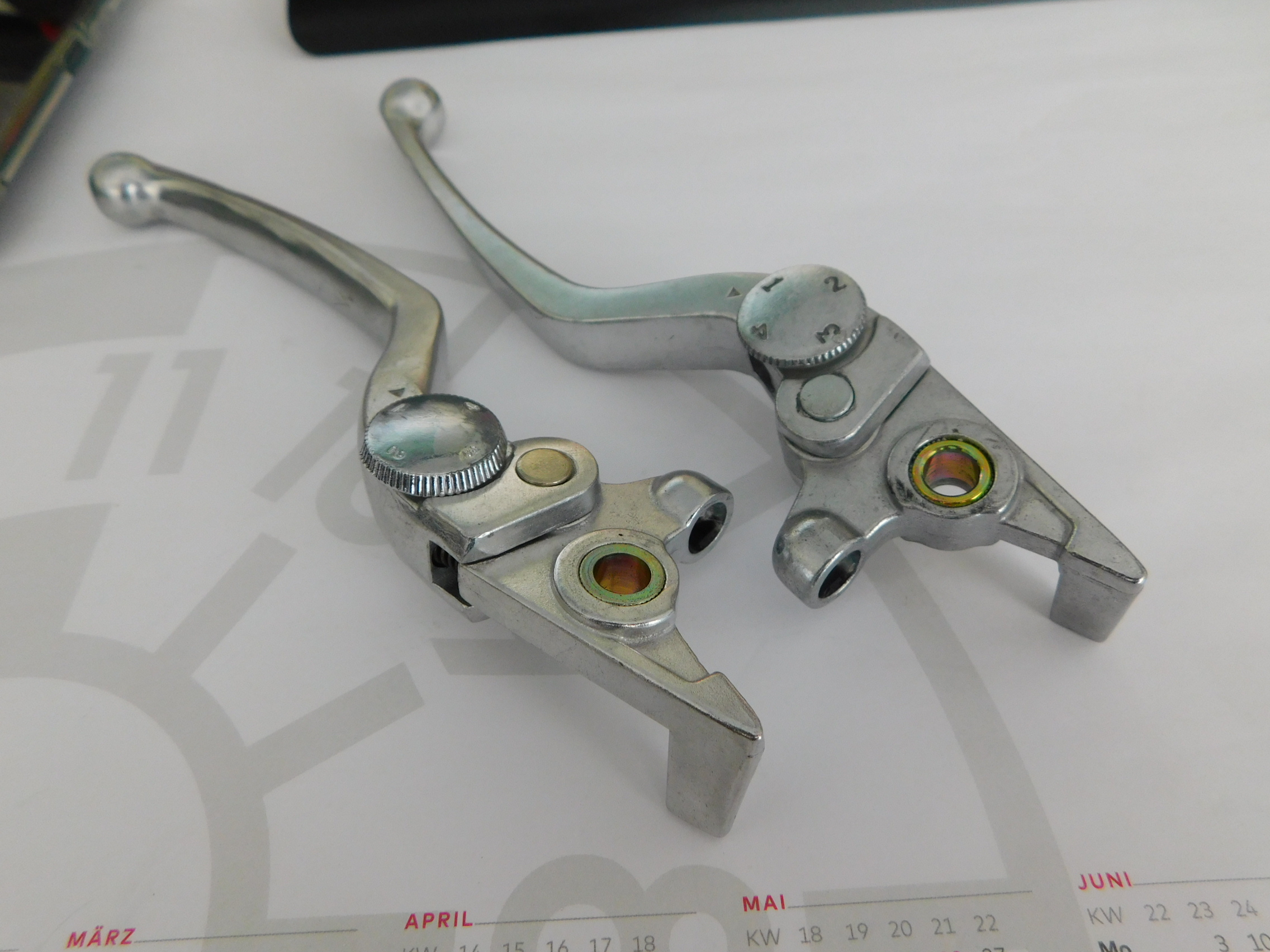 Ich habe auch noch die originalen Hebel - fast unbenutzt, die wurden sofort nach Lieferung des Motorrads getauscht. Siehe Bild. Wenn Interesse besteht, private Nachricht schreiben.