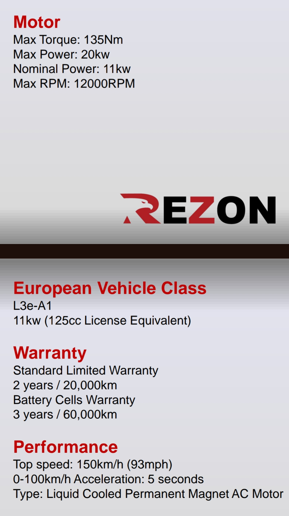 dennoch ist das erst mal auffällig. Besonders da z.b. schwerere Gefährte wie eine Rezon Bohemia mit einer angegebenen Spitzenleistung von 20 kW laut Papier die 0-100 km/h in unter 6 s schaffen soll/will.
