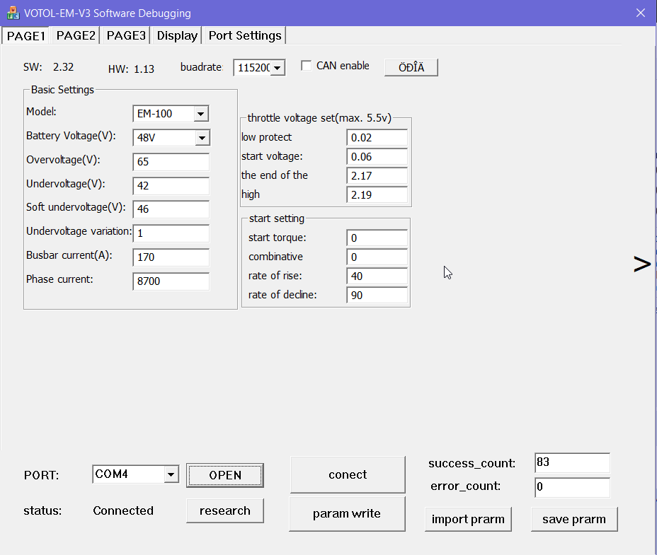 Re: Seat Mo mit Votol EM150/2 die Einstellungen