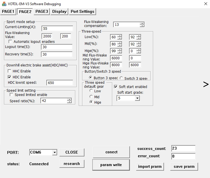 Hier hat wushan die Stellung Hige als default gear ausgewählt. Beim Einschalten startet dann der Controller in Fahrstufe 3.