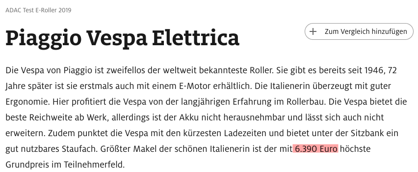 Und hast den dann tatsächlich gekauft? - Ganz ehrlich, 6.400 € würde ich für einen nur 45 km/h schnellen Roller niemals ausgeben.