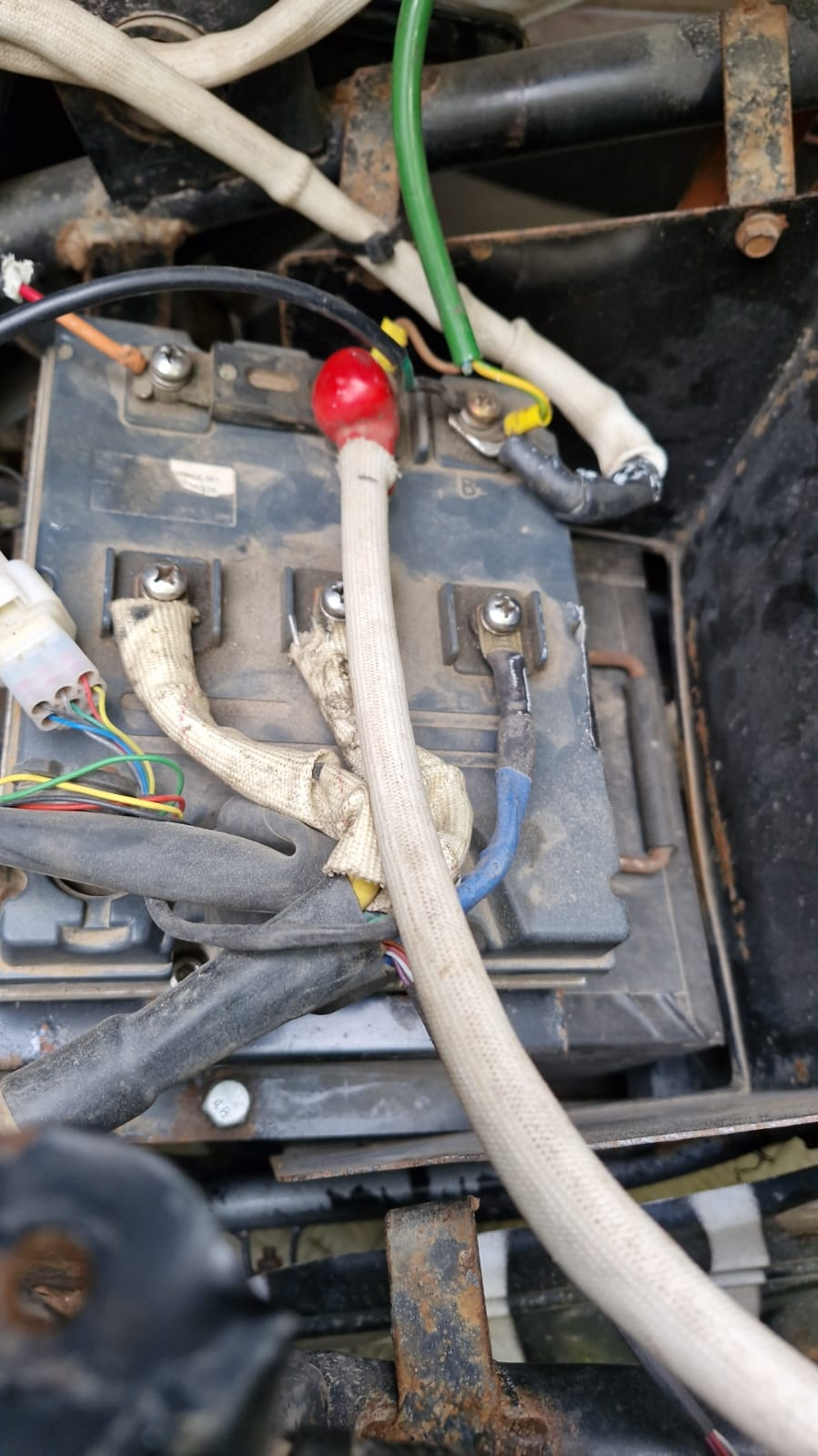 Das grüne ist dann die Masse, die sich im Kabelbaum weiter verzweigt zum DC-DC-Konverter und allerlei Verbrauchern.