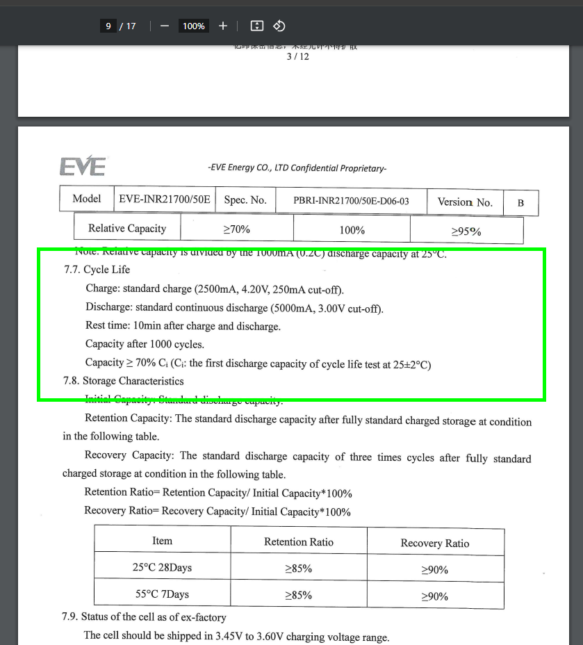 In solchen Datenblättern werden auch immer erwartete (manchmal auch garantierte!) Anzahl Lebenszyklen (also Lade-Entlade-Zyklen) angegeben, die sich jedoch immer nur auf die angegebenen Standard-Werte beim Laden bzw Entladen beziehen. Je öfter man diese Standard-Werte überschreitet, je öfter man also "aggressiv" fährt und je öfter man schnelllädt, desto deutlicher werden diese erwarteten Lebenszyklen unterschritten: