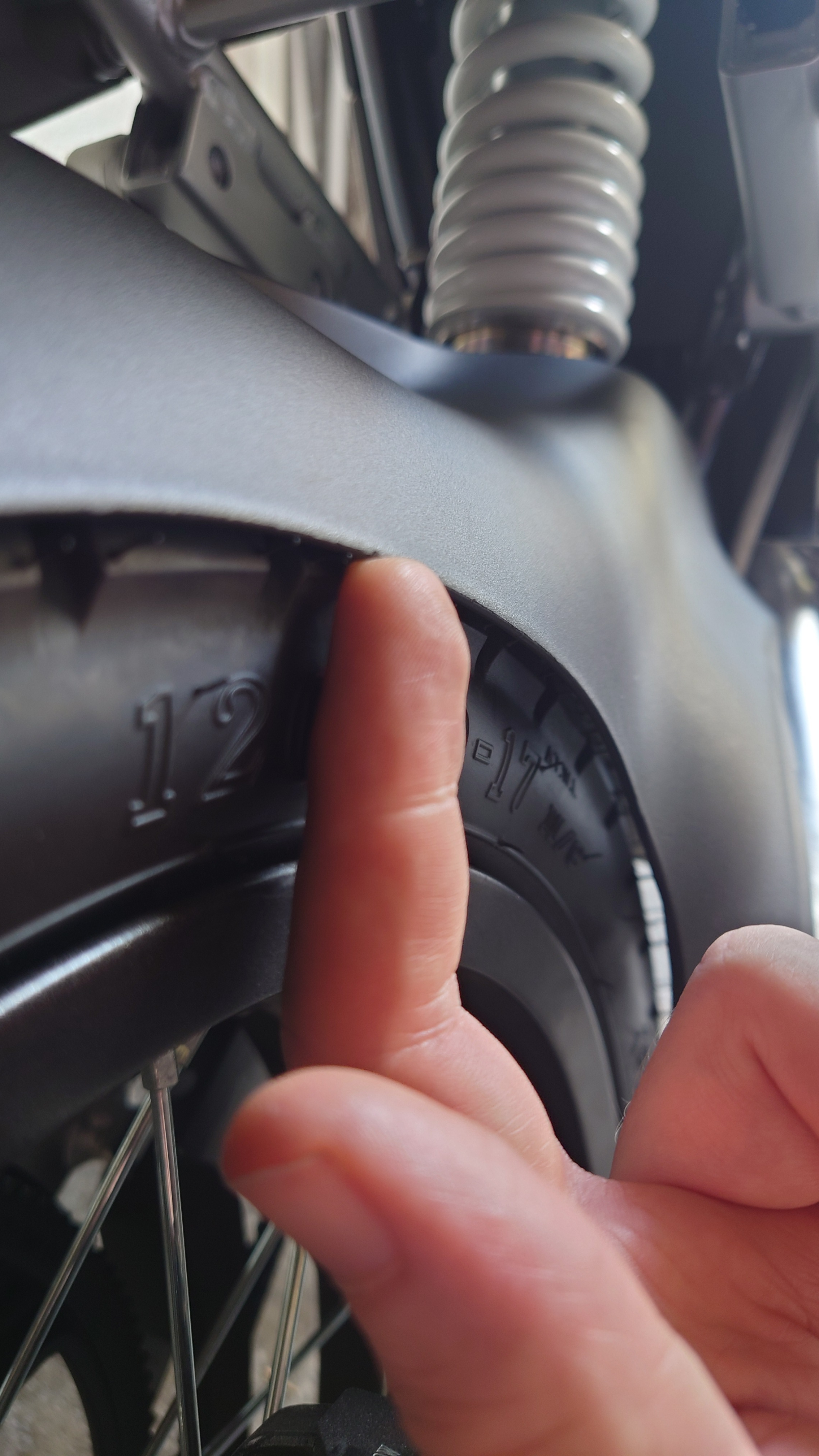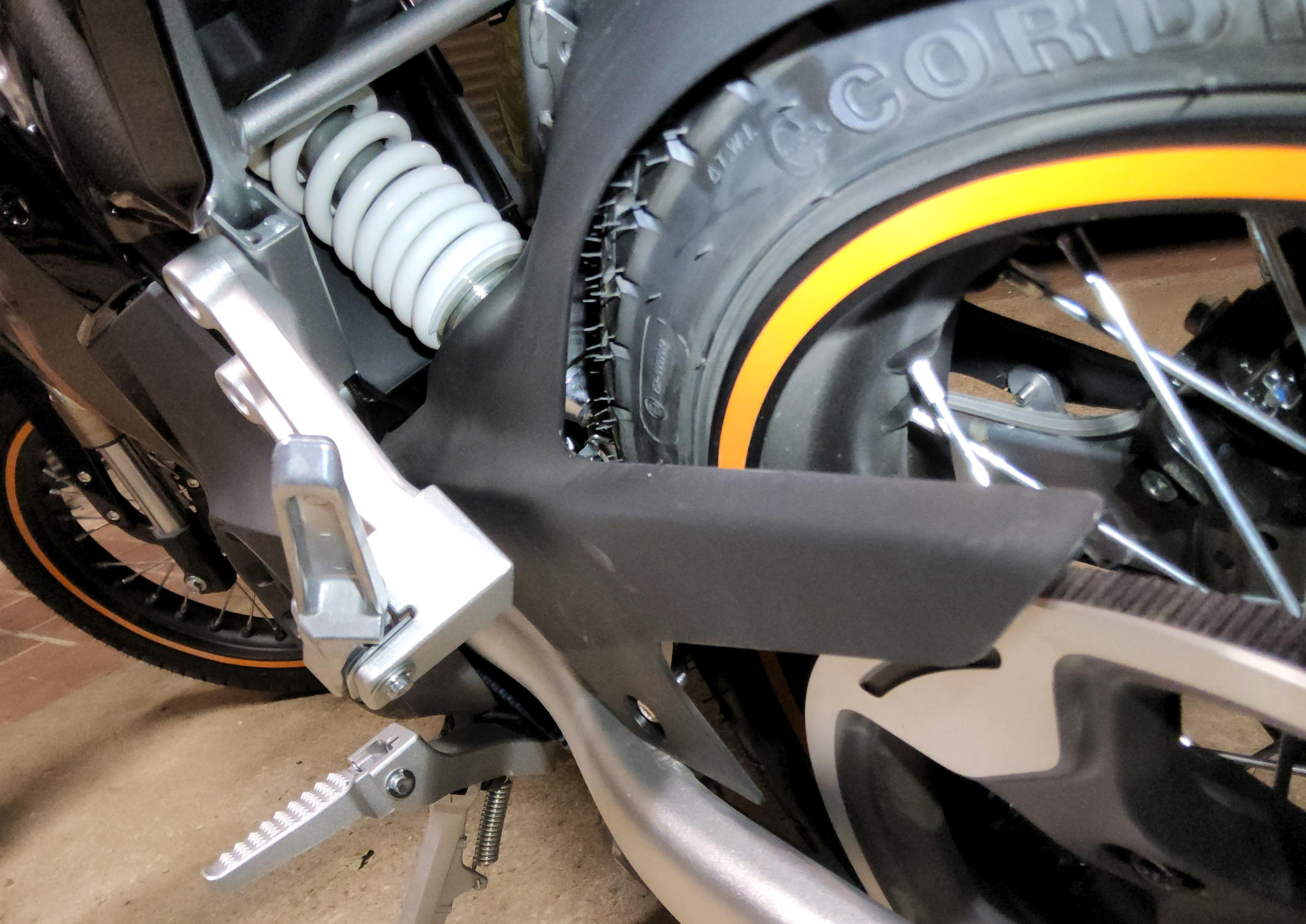 Unter dem Schutzblech ist links mehr Platz weil dort auch die Riemenscheibe ist. Die schleifende Schwinge lässt sich vielleicht durch Erwärmen und Biegen der Plastikabdeckung beheben?