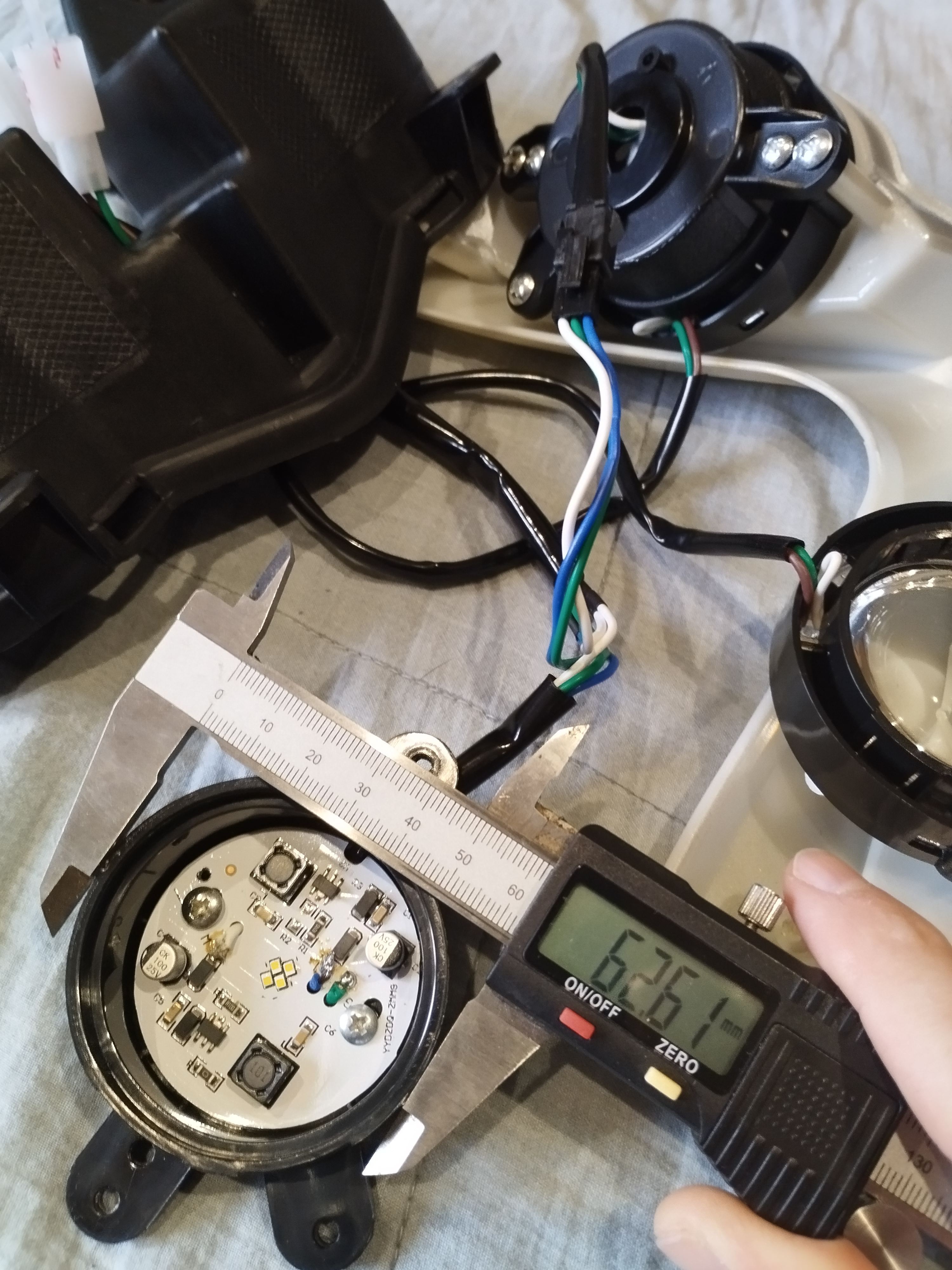 zuerst einmal eine Korrektur, die Linse und der LED-Ring sind eine Scheinwerferkomponente welche wahrscheinlich aber nochmal zerlegt werden kann hier nochmal einige Bilder, danach folgen einige Bilder der gemessenen Bauteile: