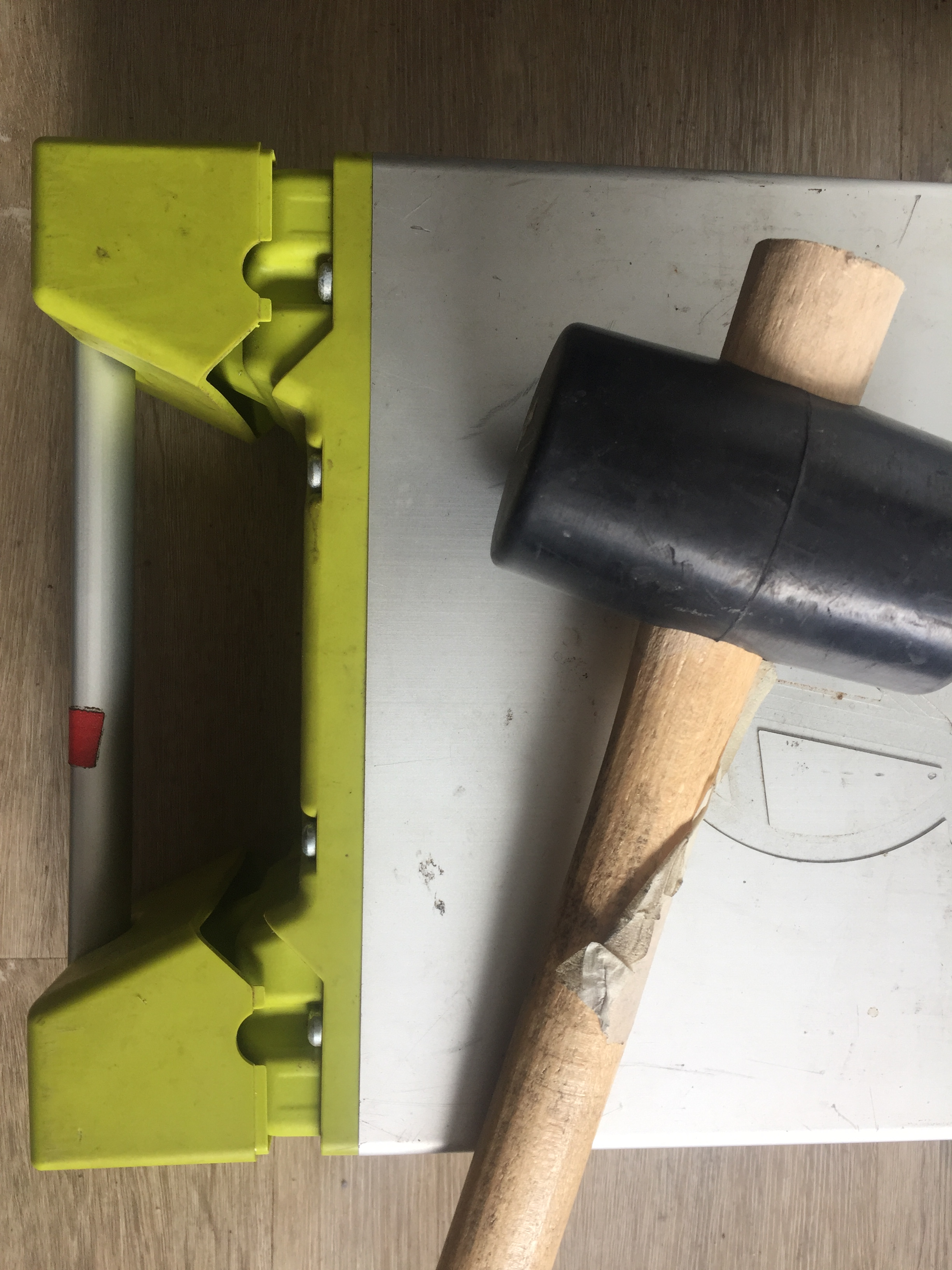 habe einen breiten Schreibenyieher in den Spalt gesteckt und dann vorsichtig mit dem Hammer draufgehauen. dies dann von allen seiten wiederholt.