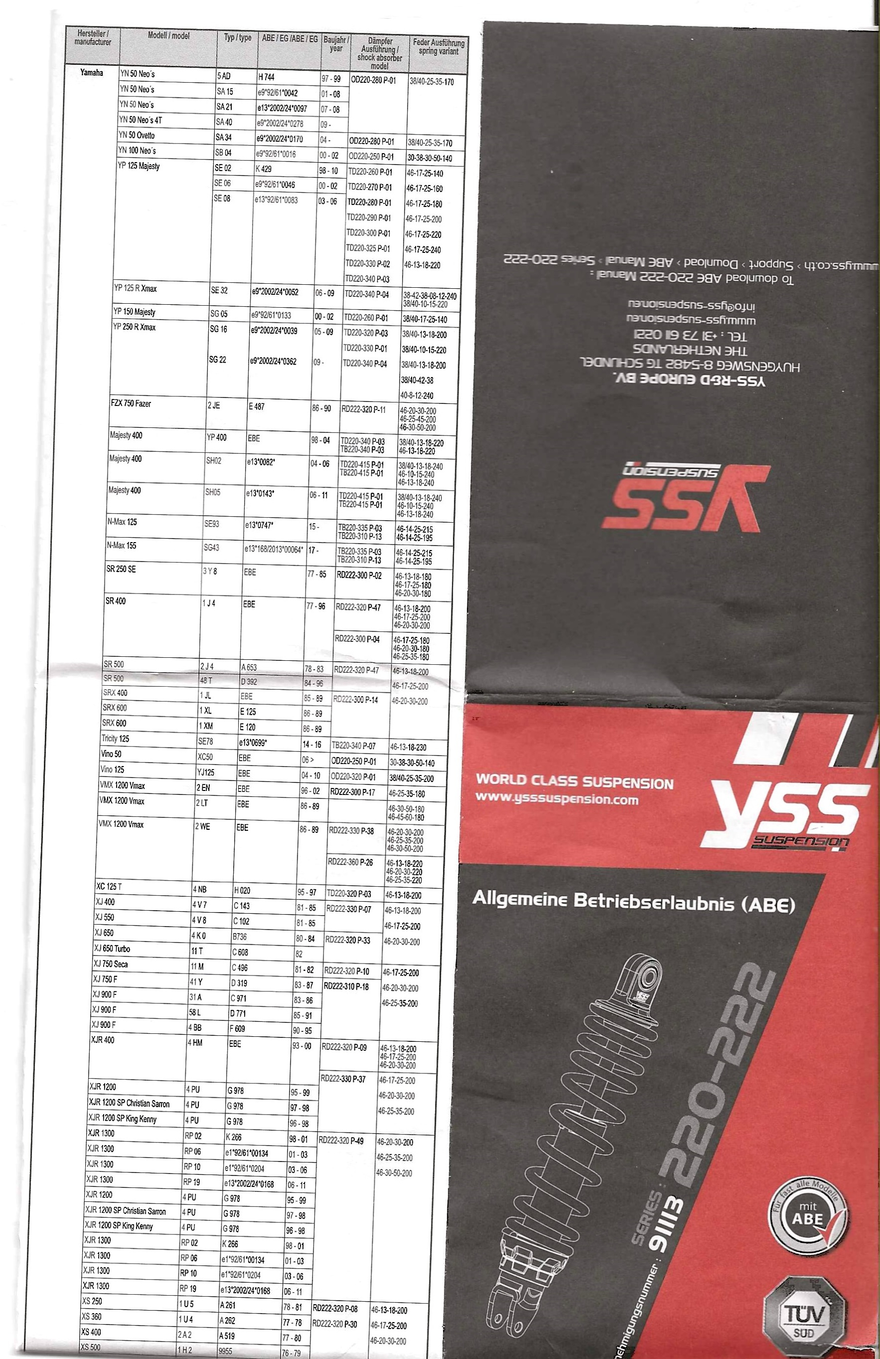 Mit diesem Gutachten, der ABE, und der Zulassungsbescheinigung Teil 2 fährt man in die Zulassungsstelle, latzt um die 8€, und bekommt eine neue Teil 2, in der unter Bemerkungen die YSS-Dämpfer vermerkt sind.