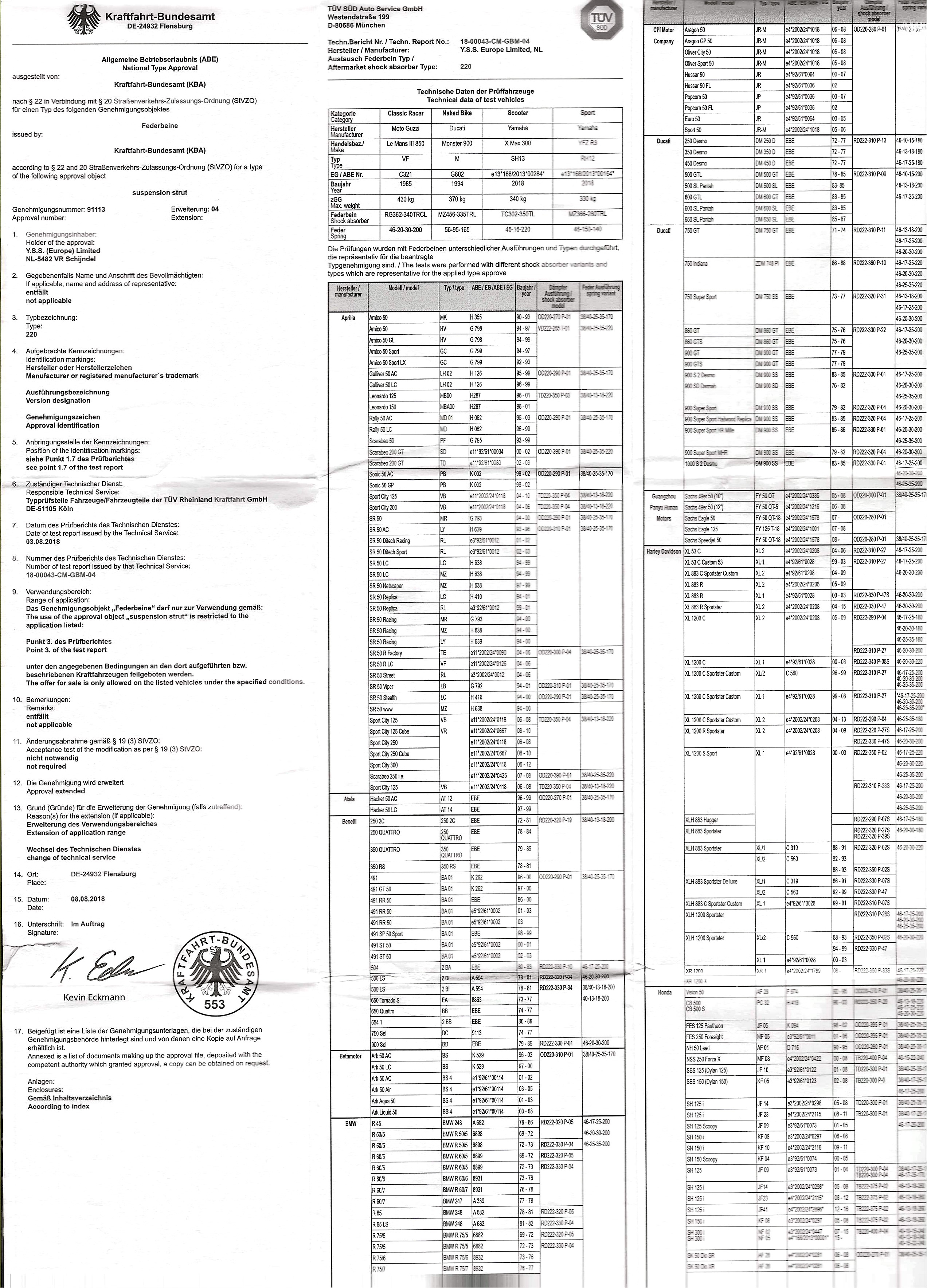 Ich bin bei dir, manche Dinge sind manchmal wirklich unsinnig, aber bei Stoßdämpfern.... nur weil sie die gleiche Länge haben heisst es ja nicht das sie funktionieren. Vielleicht hat das Fahrzeug für das sie eigentlich gedacht sind ein komplett anderes Gewicht, eine andere Anlenkung,.... und somit stimmen Federrate / Dämpfung überhaupt nicht.STW hat geschrieben: Sa 19. Okt 2024, 08:32 Stoßdämpfer gleicher Länge mit E-Nummer (d.h. grundsätzlich geprüft) sind ein "Drama", Gepäckträger nicht, Handschutz sind kein Drama, vorverlegte Fußrasten dagegen schon, ...