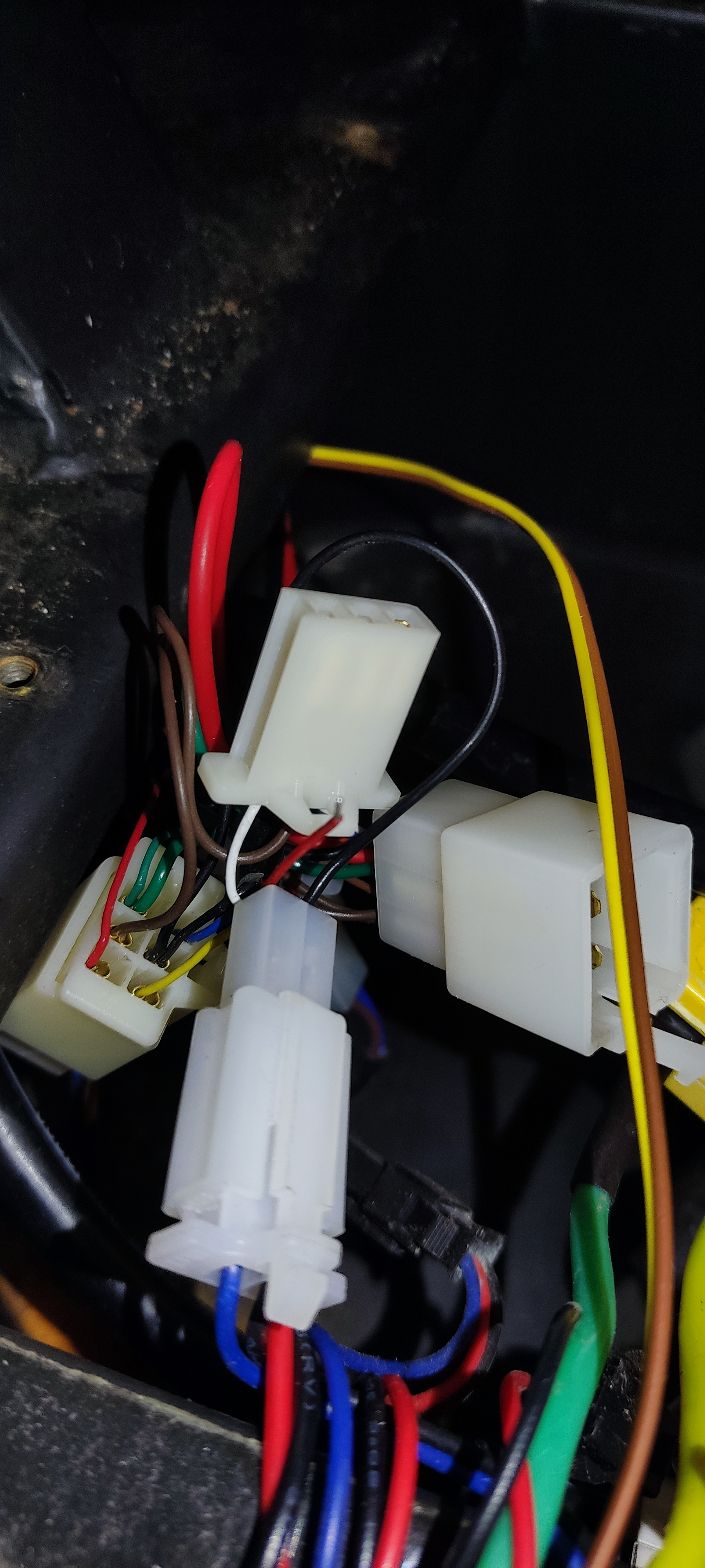 Es kommt aus einem 5 poligen kleinen Kabel . Auf dem Bild vor dem weißen Stecker .