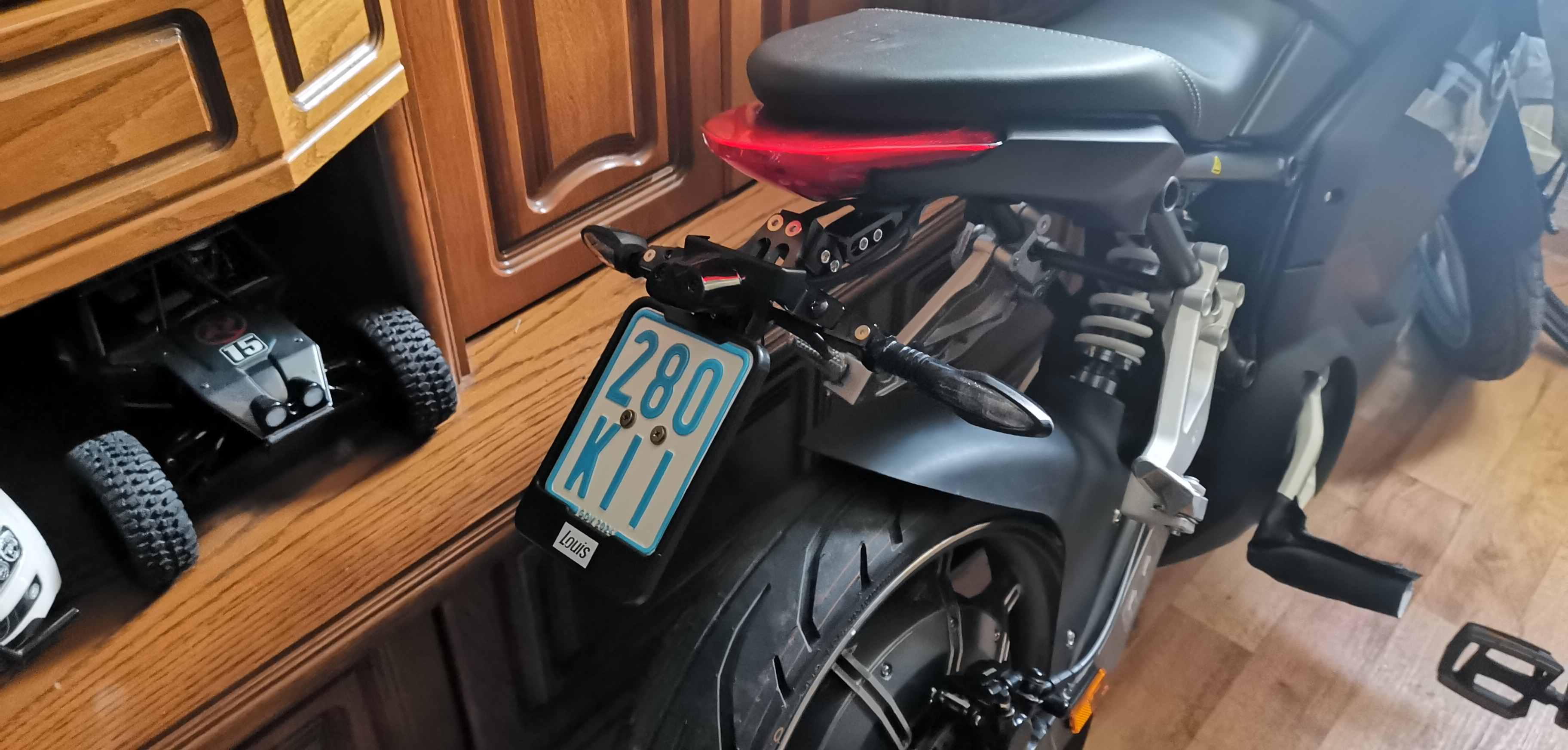 Ich habe den originalen Kennzeichen Halter incl. Beleuchtung weiter verwenden können. Den Rückstrahler habe ich auch wieder verwendet mit einer entsprechend gedruckten Halterung zum Einklipsen.