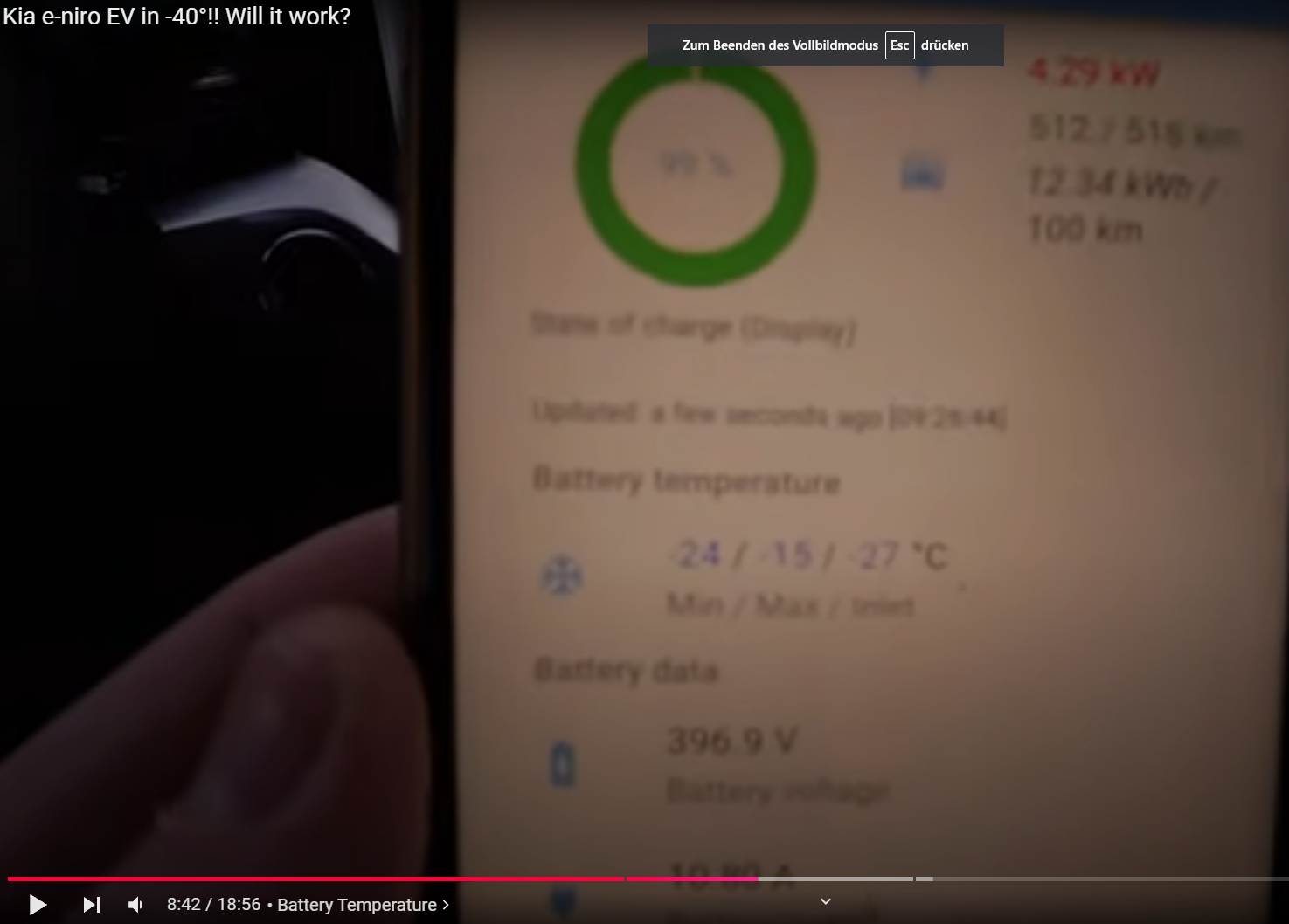 Ja, die Akkus dürfen nicht mit hoher Ladeleistung geladen werden bei Minustemperaturen. Aber dazu ist die Batterieheizung beim E-Auto da. Bei Hyundai/Kia wird mit 4 kW die Batteriethermalflüssigkeit während des Ladevorgangs auf bis zu +15° C erwärmt. Dann bei weiterem Aufladen und Erreichen von 20° C Batterieminimaltemperatur hat man wieder die maximale Ladeleistung. Von -5° C bis +15° C kann das gut 30-40 Minuten dauern die 400 kg Batterie zu erwärmen. Den Kona damals bei Famila am 50 kW Lader aufzuladen auf 90% hat damals im Winter ca. eine Stunde gedauert...