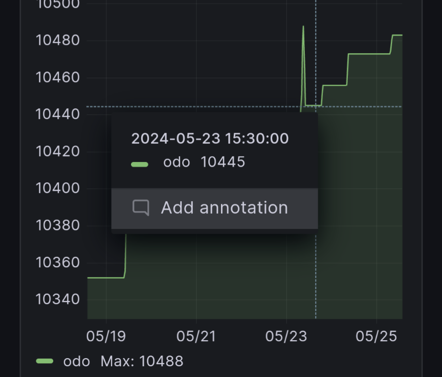 das Display wird auch beim Laden eingeschaltet. Damit ist bei mir der Datenpunkt mit dem zurück gestellten Kilometerstand entstanden.