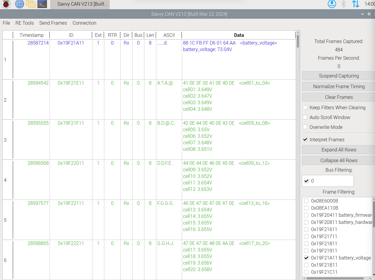 Ich habe eine Database CAN (DBC) File angefangen, dort stehen schon alle Messages zum Thema Akku darin. Diese Files sind mit verschiedenen CAN Bus Scannertools kompatibel, die zeigen dir dann direkt die Nutzdaten an (wie im ersten Beitrag zu sehen).