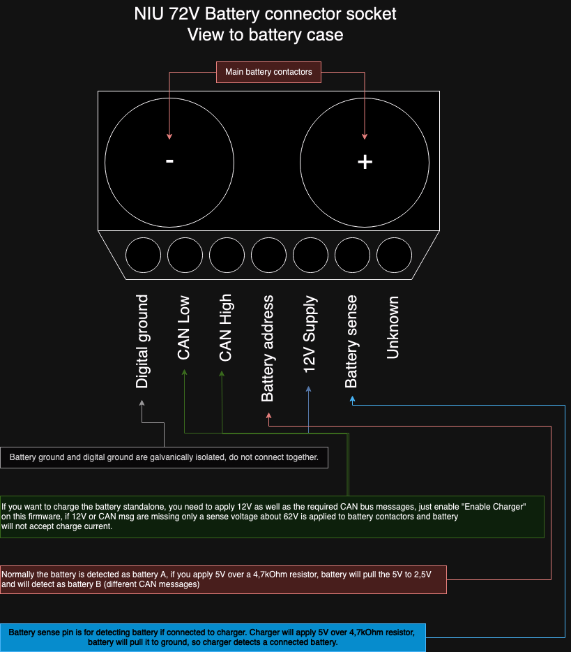 Also mit dem Lader 2-3Ampere draufgeben und schauen ob ich diesen Wert finde. Nur leider ließ sich der Akku nicht laden, auch wenn ich diesen mit meinem T-CAN aufwecke und Daten bekomme. Wenn ich nur den CAN Bus vom Originallader mit dem Akku verbinde, ändert sich ebenfalls nichts. Hab nur die Sense-Spannung von ca. 62V auf den Kontakten.