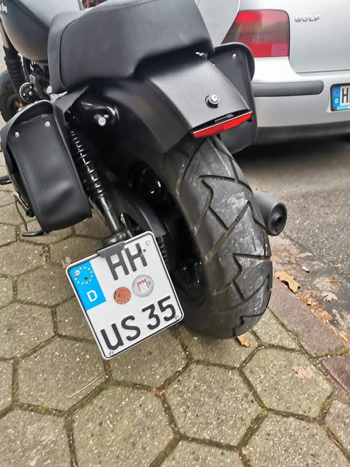 Ein Kennzeiche im Landkreis Sömmerda, mit der Größe 180x200 ohne „E“ für Elektrofahrzeuge, würde ungefähr so aussehen. Ich persönlich würde mich auch für ein Kennzeichnen in 180x200 an der Street Hunter entscheiden.
