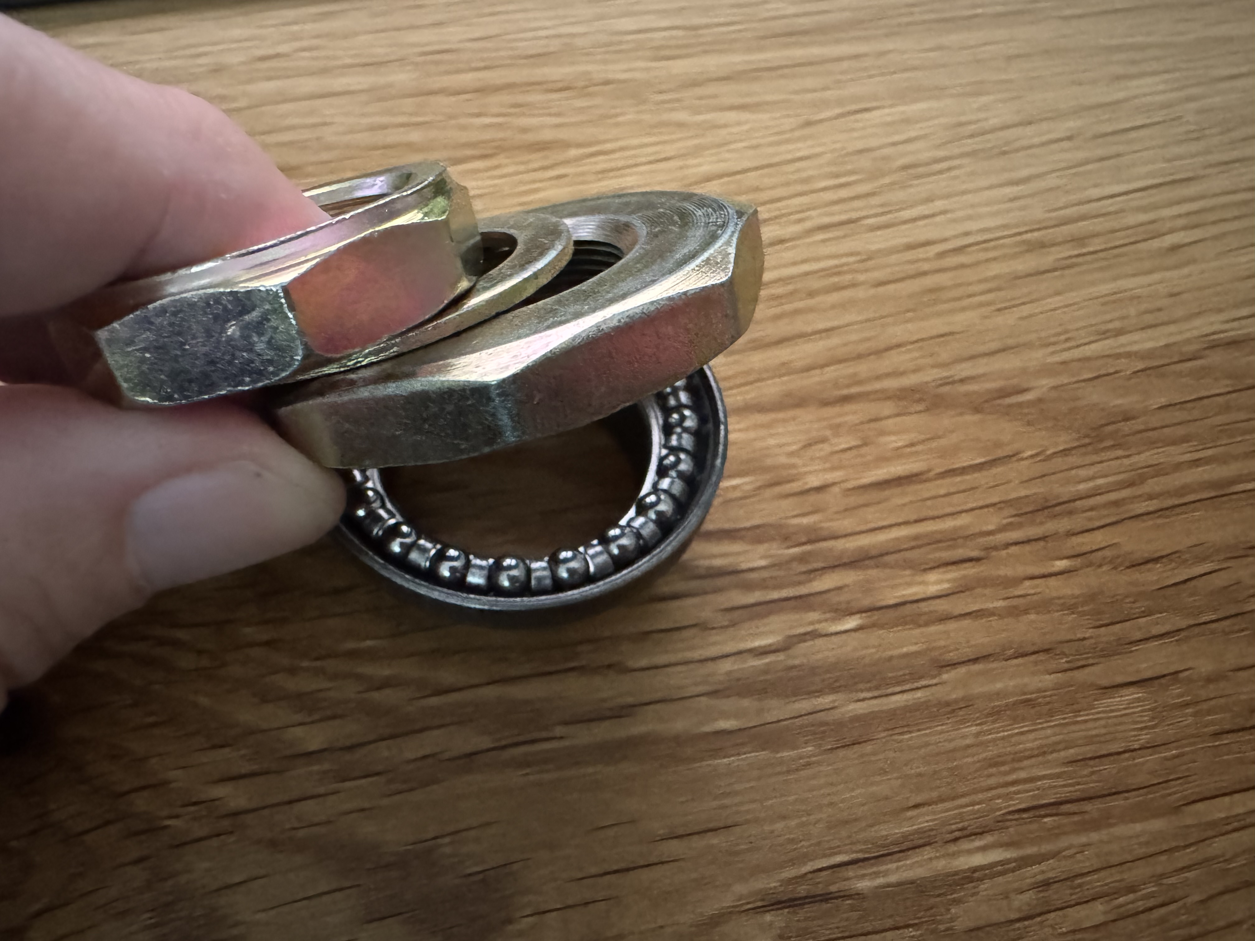 Der obere Teil passt, aber unten passt das Kugellager nicht in die Schale, weil Schale zu klein. Außerdem fehlt der Teller für den unteren Teil. Hier wurde mir gesagt, dass es den nur mit der Gabel gäbe. Das habe ich noch nie gehört, dass ein LKL nicht komplett geliefert werden kann.
