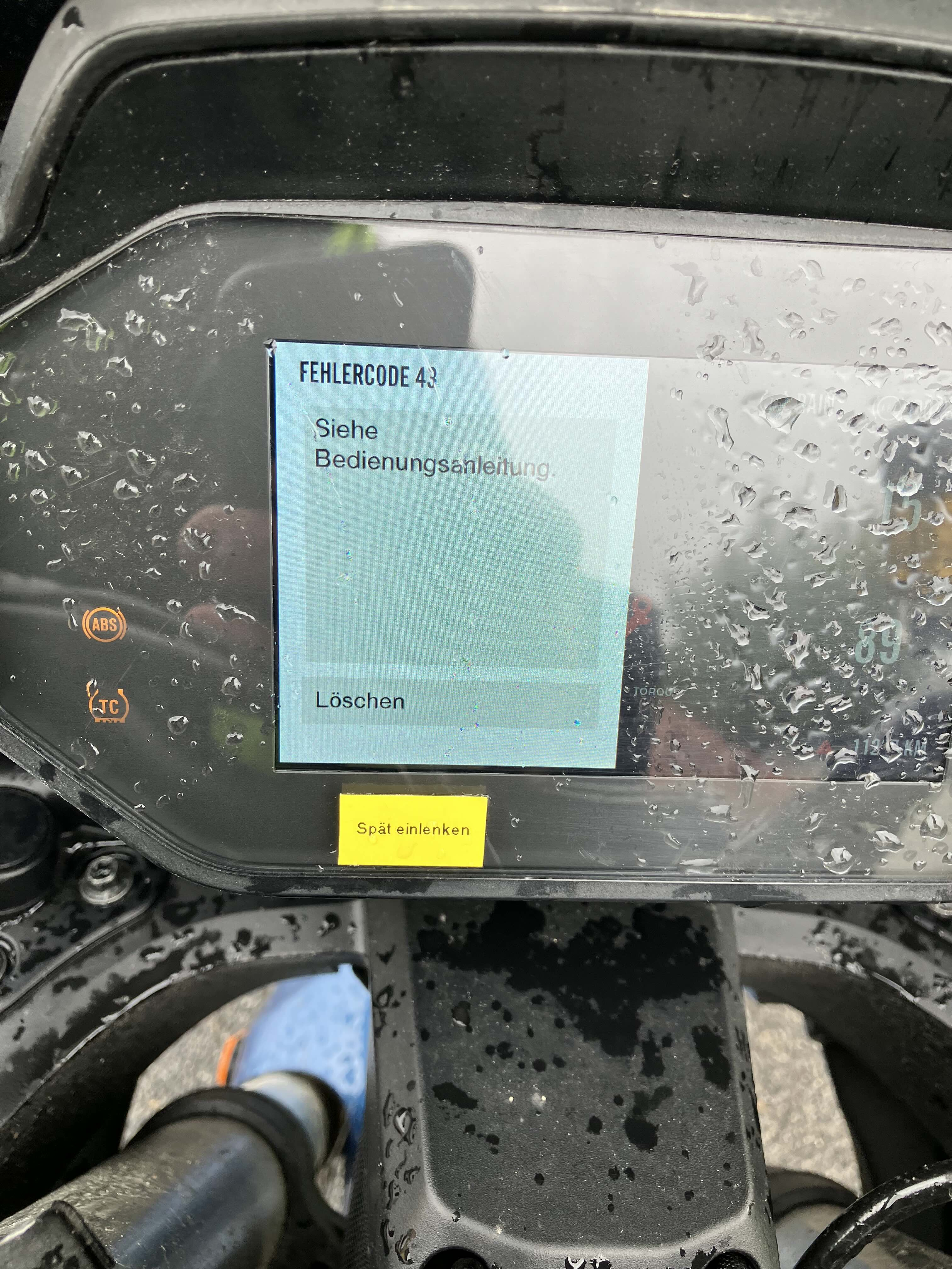 Bei der Dolomitentour im September sind wir ums Stilfserjoch in leichteren Regen gekommen, da hat sie trotzdem gesponnen mit Fehlermeldungen 31 und 43 lief aber bis ins Tal weiter.
