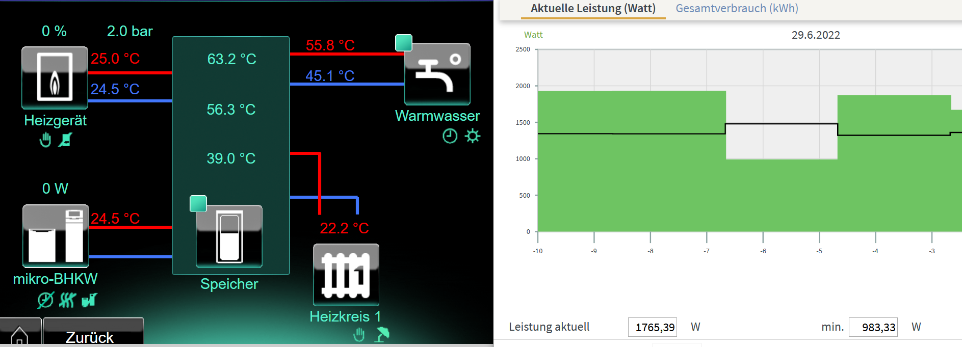 Morgens jetzt 9 Uhr wird schon Speicher wieder aufgeheizt.