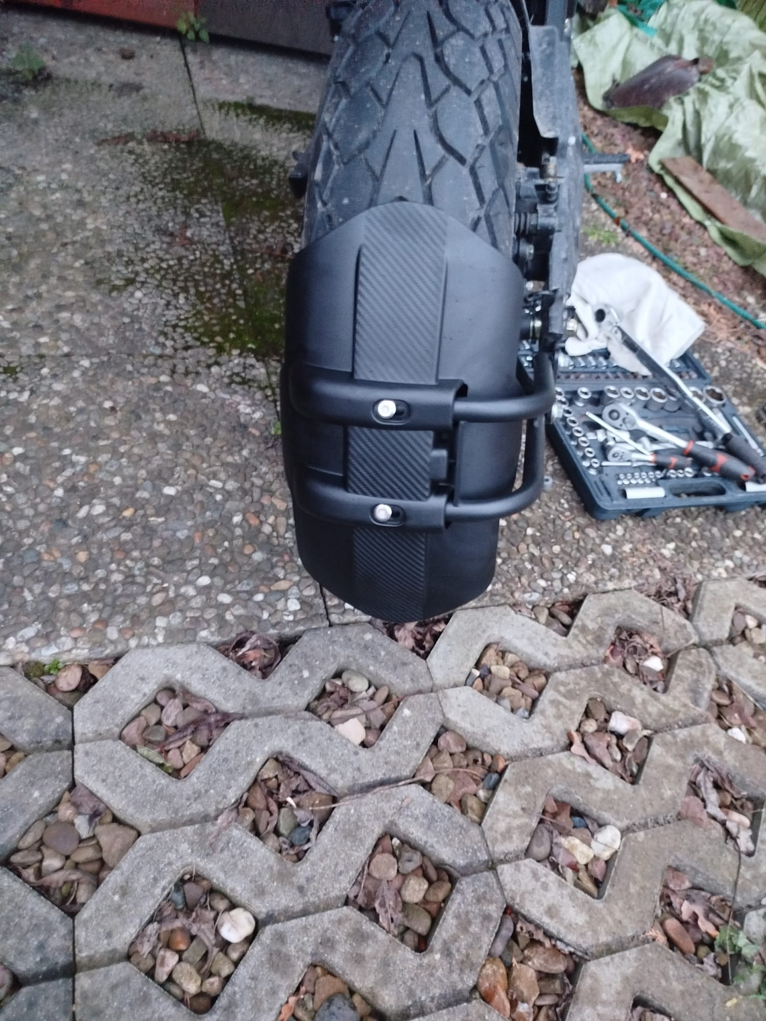 Meine Lösung für den Fehlenden Spritzschutz bei dem 160er Reifen. Allie... machts möglich. Musste es nur etwas modifizieren (auf 41mm Breite ändern) damit es da in die Schwinge passt. Hier der Link, falls es jemand kaufen möchte.