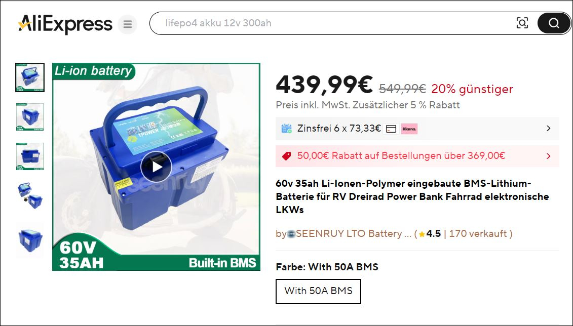 PeterS. hat geschrieben: Sa 7. Dez 2024, 21:53 das ist allerdings das Problem, die Lifepo4 mit 20 Zellen gibt's zu vernünftigen Preisen nur aus China!