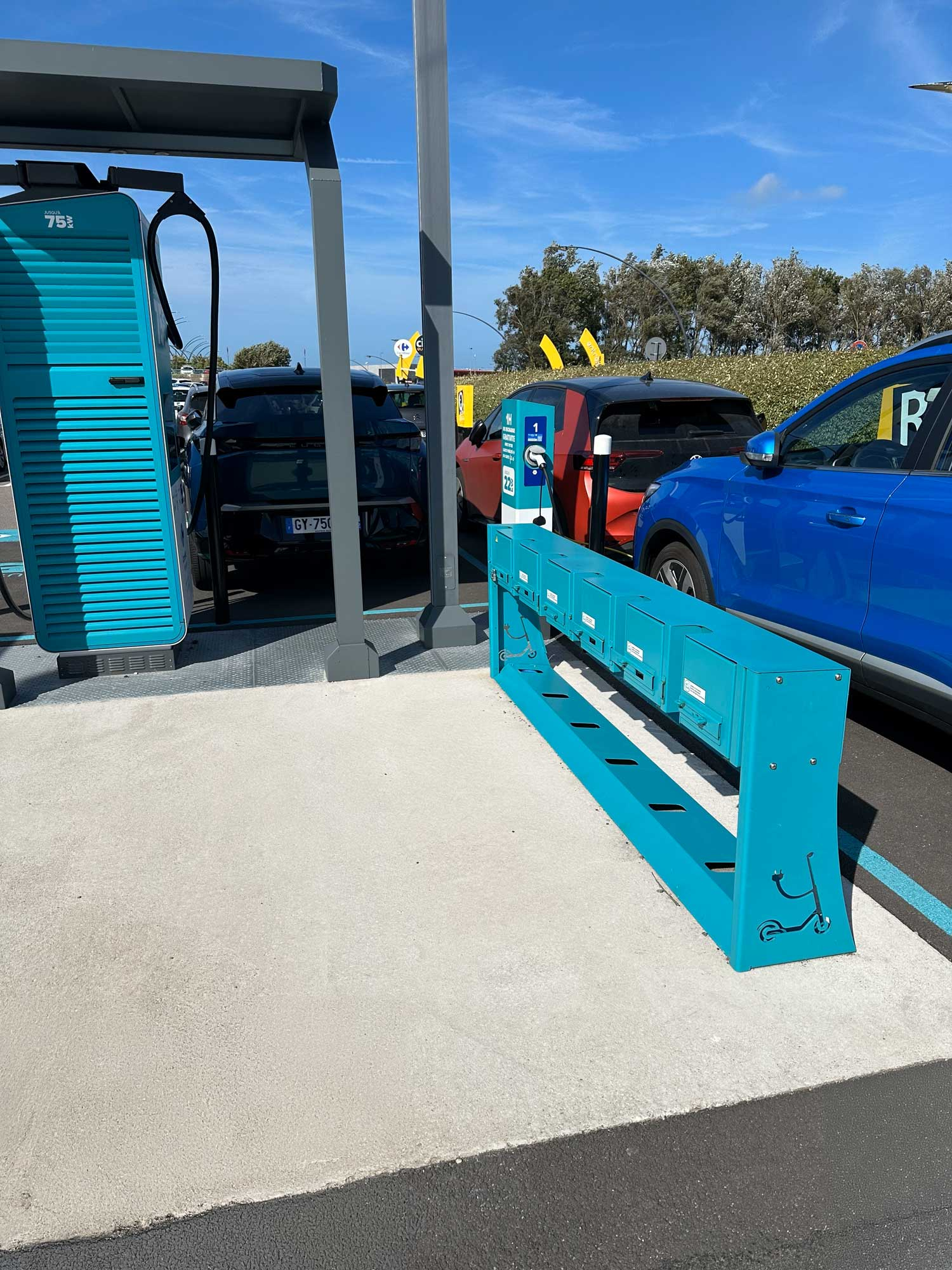 diese Ladestationen habe ich in Deutschland noch nicht gesehen, finde eine gute Lösung für Roller und Scooter.