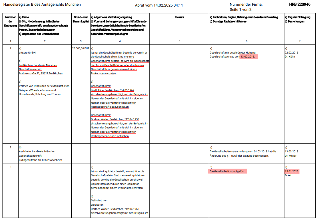 E.F.O. ist kein Hersteller sondern ein Importeur in Österreich. Handelt hauptsächlich mit Baumaschinen und Anhängern. Im Fahrzeugbrief ist eine Adresse in Singapur genannt. Der ist aber auch nur Händler . Ich nehme an der Roller kommt von lvneng. Er war in dieser Form kurzzeitig bei Nova Motors 2022 als Sli 6 max (neu) auf der Seite. Ist auch wurscht. Wichtig: Händler (efuture Aschheim) direkt auf dem Arbeitsweg.
