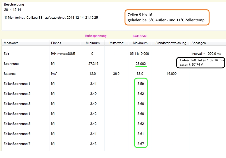 In den nächsten Tagen werde ich mal beobachten, ob sich die Zelle 9 nicht doch wieder einkriegt.Wohlgemerkt, ich hatte es ja versäumt, die Zelle 9 auf das gleiche Niveau wie die anderen zu entladen (nach der Einzelaufladung).