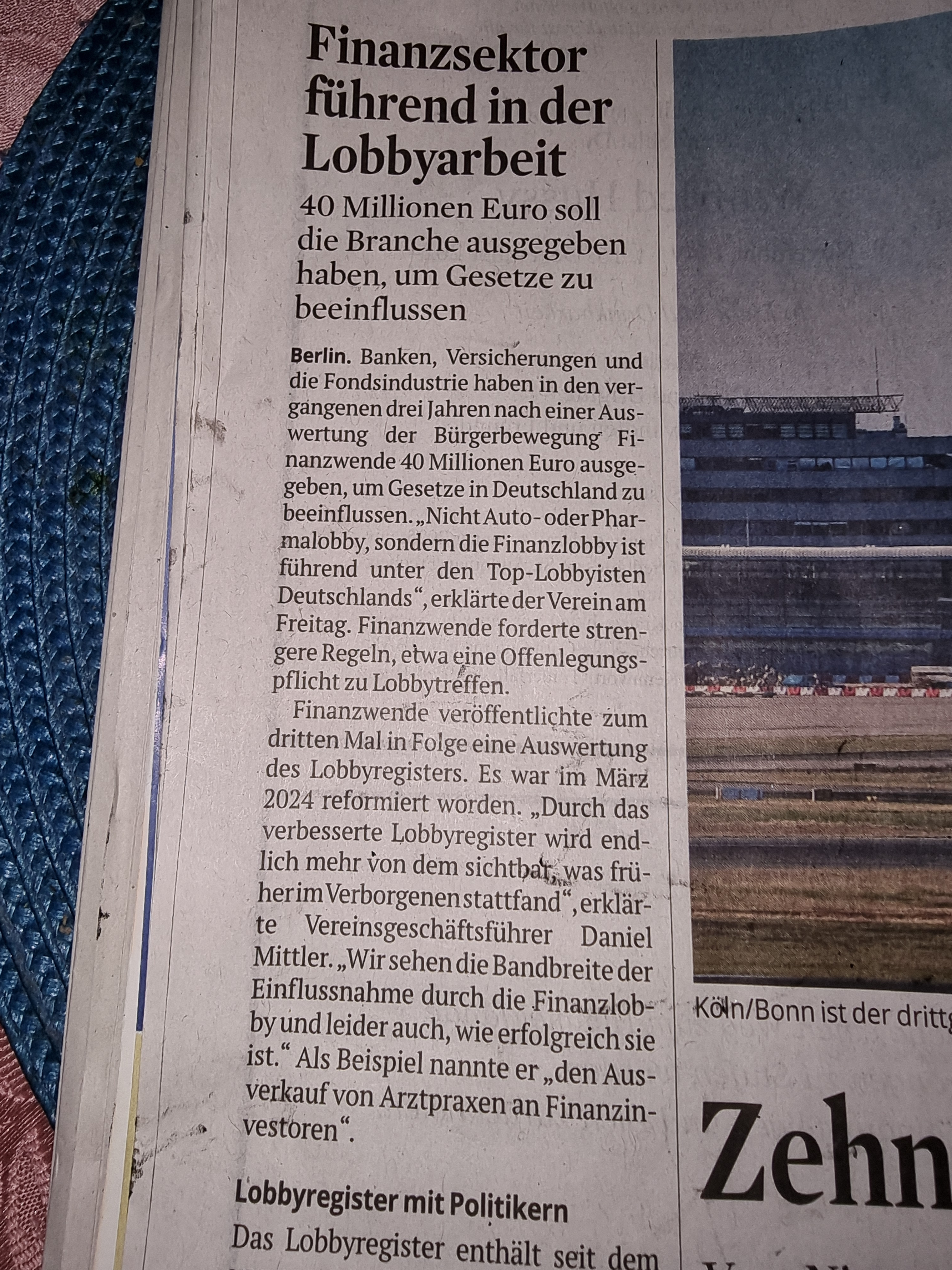 Bitte wieder zurück zum Thema, denn Finanzlobbyisten sind hier absolut fehl am Platz