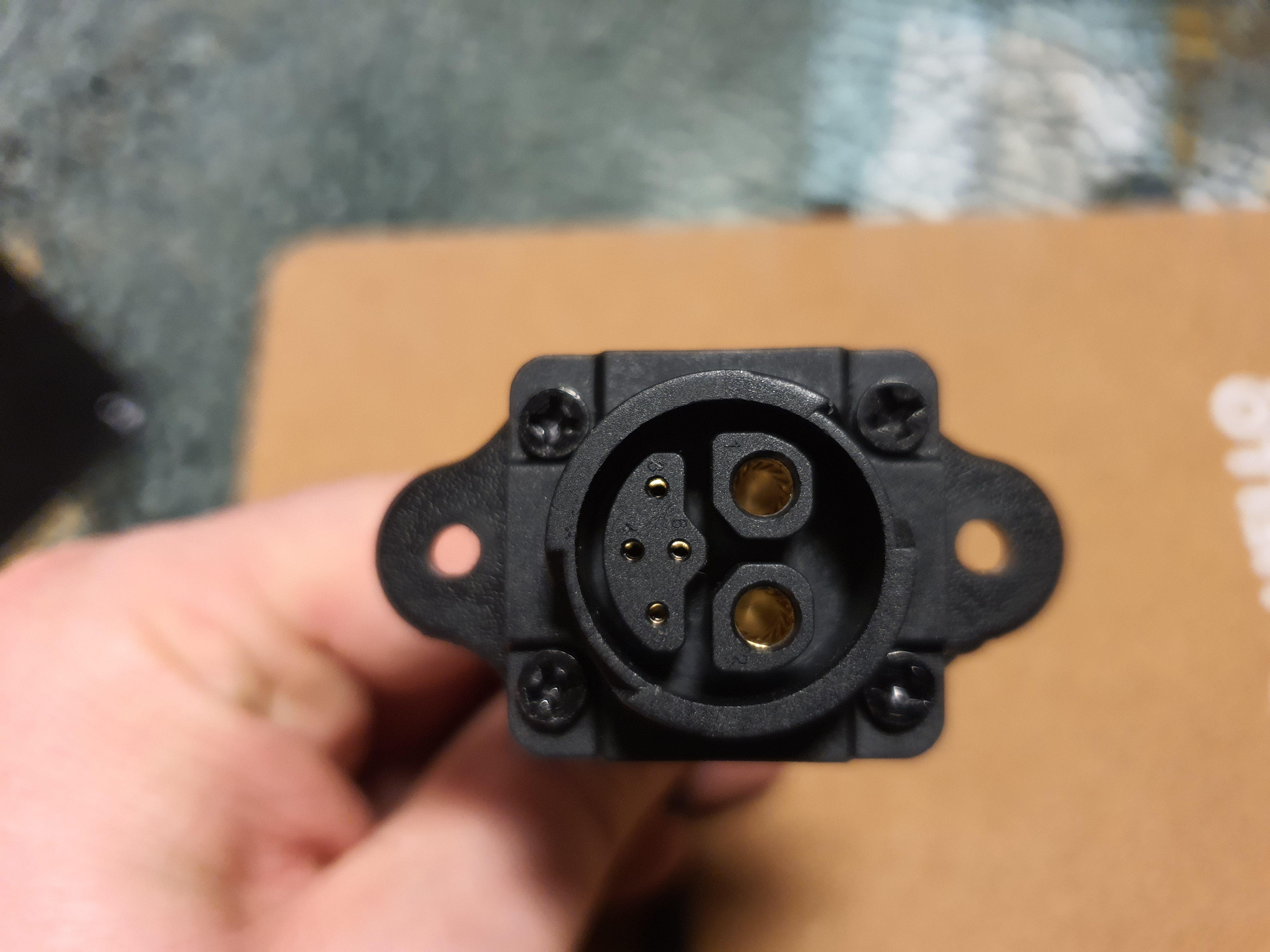 Leider keine Fotos beim Tausch gemacht. Und hier mein Fest verbauter lade Anschluss, so das ich die steck zyklen am Akku unter Spannung reduziere. Musste aber hierfür noch einen Schalter zwischen Controller und 48V / 12V Wandler verbauen. Da beim zuschalten das Ladegeräts ja volle Spannung am Wandler anliegt. Fängt dieser an zu arbeiten und das Licht geht zwangsweise beim Laden an