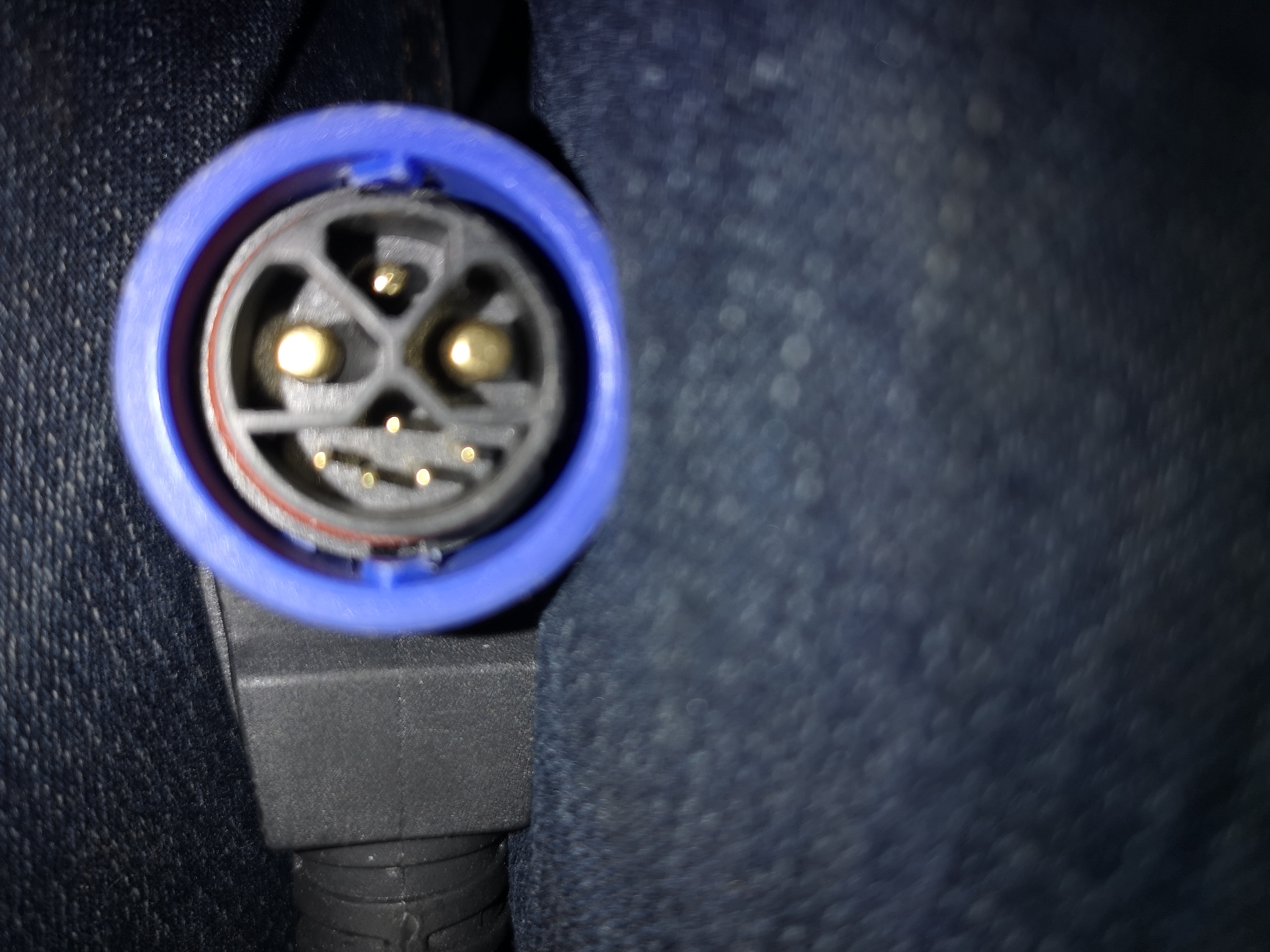 Der ATU-Akku hat zwei Buchsen, eine zum Laden (C16 oder so?) und eine zum Entladen (Chogori 2-1-5). Von den vielen Kabeln und Kontakten ist so gut wie nichts durchverbunden. Entweder gibt es im Akku keinen Anschluss oder in irgendeinem Stecker im Roller endet das Kabel. Laden und Entladen (B+ und B-) sind einfach parallel geschaltet. Das kann so bleiben, weil das Daly ein „common port“-BMS ist. Ein Signalkabel schaltet über das Zündschloss den Originalakku frei (kleiner Pin in der Mitte Nr. „4“). Das entfällt, weil das Daly auf Spannungsveränderung hin aufwacht. Ein Kabel versorgt das Display mit Informationen zum Ladestand. Diese Funktion entfällt leider, sodass das Display nur noch den Balken mit der Spannung anzeigt. Ich habe ein Coloumbmeter verbaut. Das ist aber eine andere Baustelle.