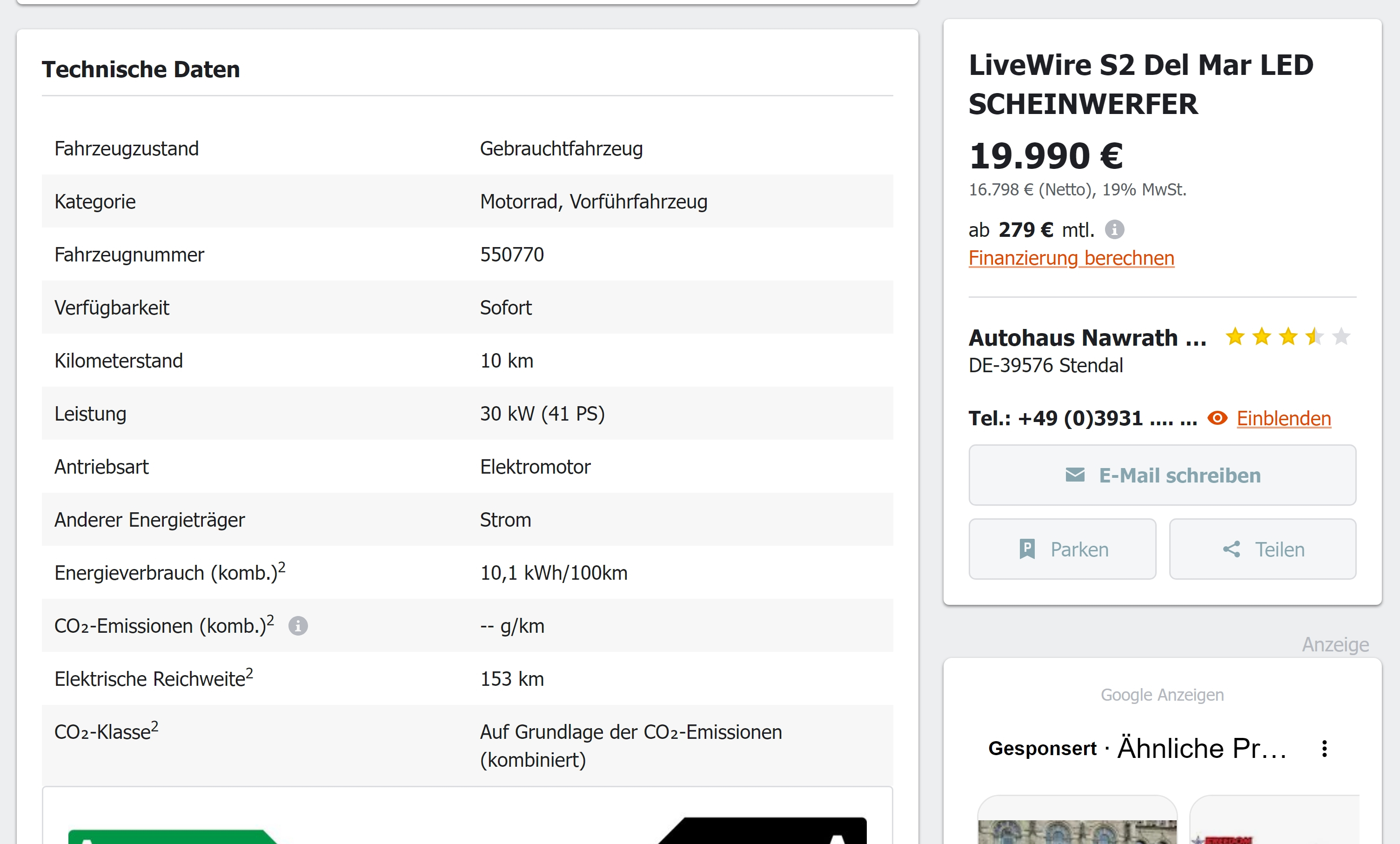 Ach du meinst die Daten aus der mobile.de Anzeige...