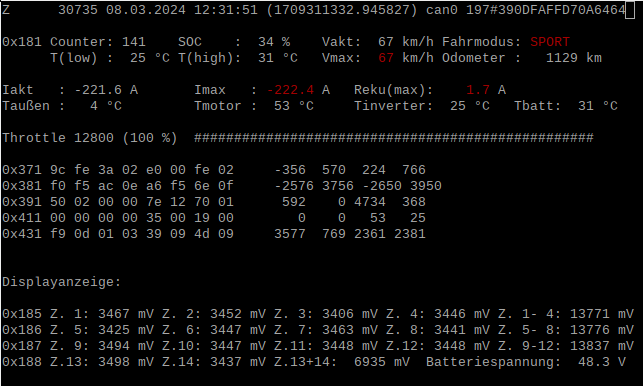 Ich weiß nicht, ob dir dieser Screenshot weiterhilft: Darauf kann man erkennen, dass (fast) Maximalstrom von 221.6 A (Iakt) bei 100% Gasgriffdrehung (Throttle) gezogen wird.