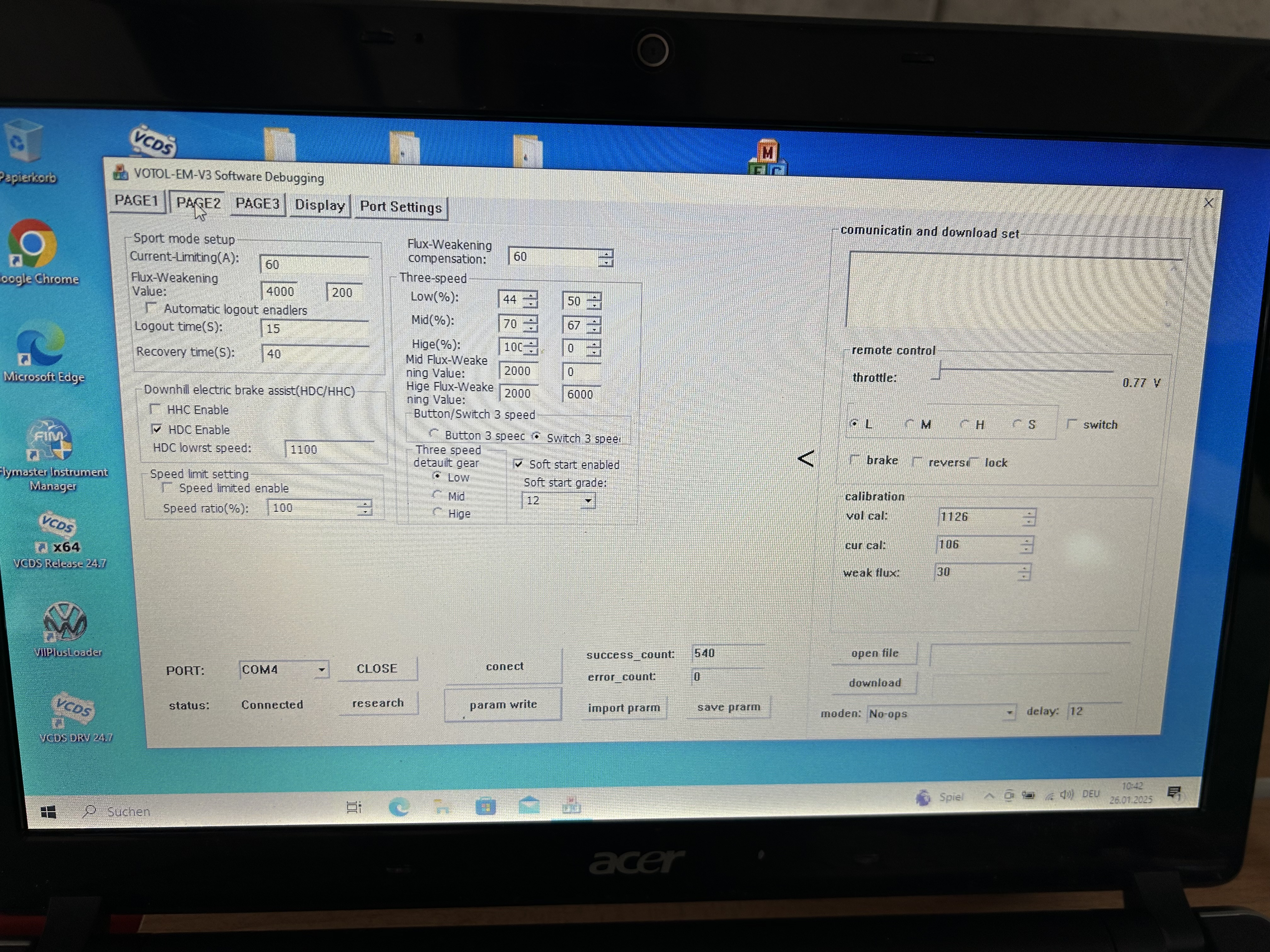 Hallo ich habe eine Govecs Flex 2,0 ich habe einen Votol Em 100 eingebaut ich brauche aber noch die Parameter Poolbare / hall Shift Angle ,Flux ….