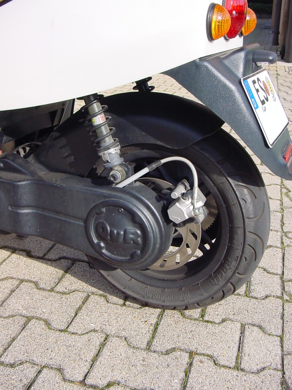 Zuletzt noch die Bremsseite vom Hinterrad, ebenfalls nur mit Einkolben-Scheibenbremse:
