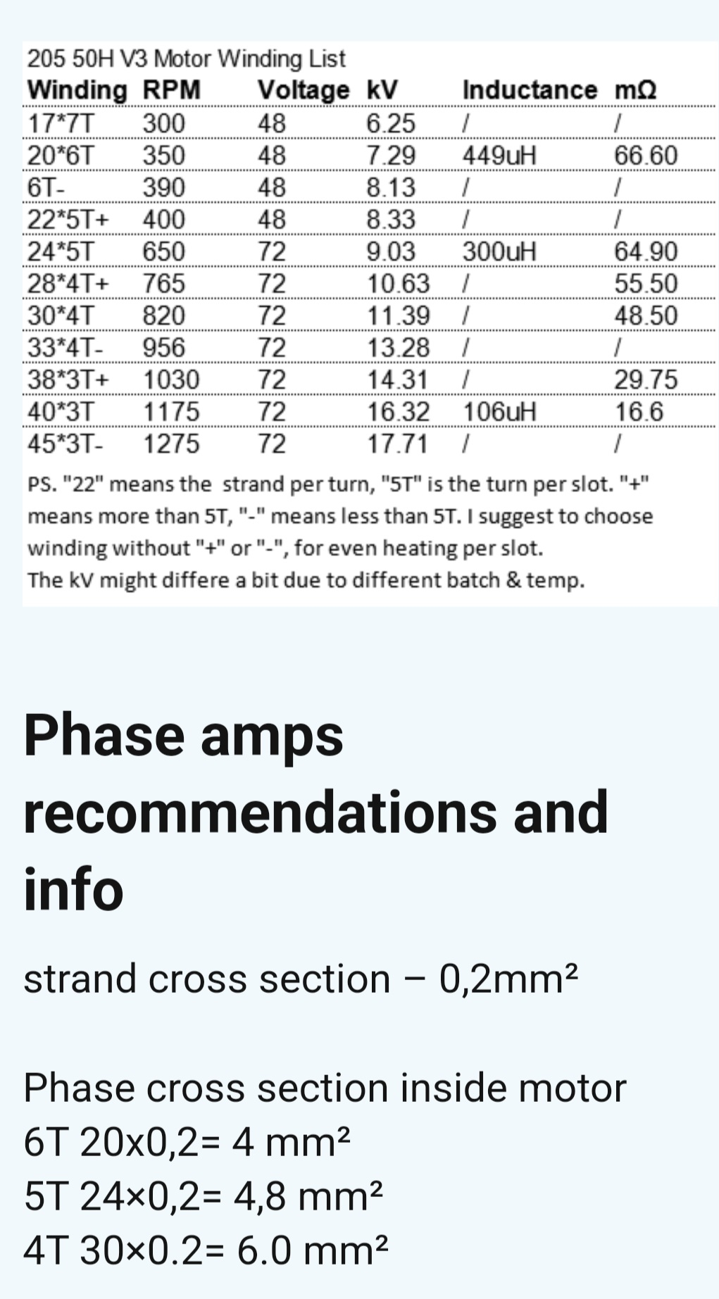 Ich gehe mal von 4T aus was 6mm² entspricht. Wenn das zum Motor hin auch nur 6mm² ist dann wird die Zuleitung lang vor den Wicklungen ans Limit kommen, da diese ja die Abwärme an den Stator und übers Ferofluid an den Rest vom Motor abgeben können.