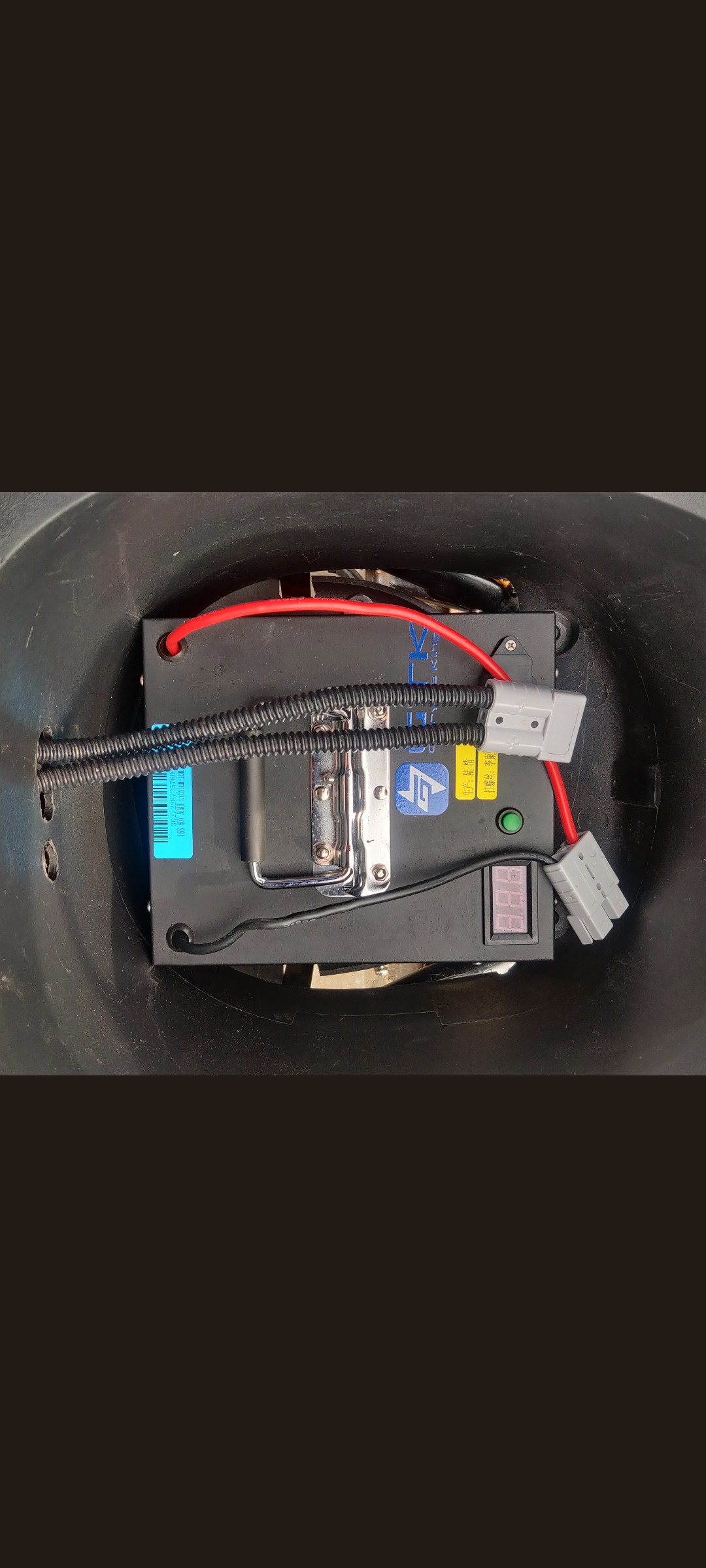 Der Stecker im Roller ist jetzt fest an der Innenseite verschraubt.