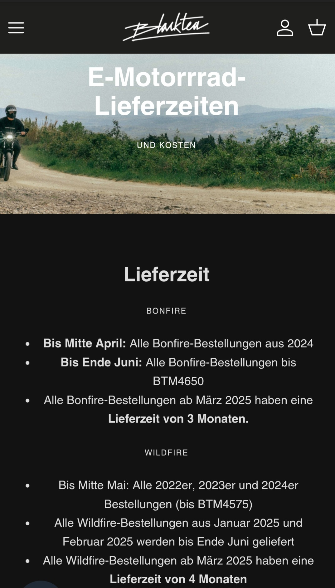 Lieferfristenupdate: Wenn es dann Realität wird, dann sollten ab Mitte Mai die ersten Wildfire's unterwegs sein!