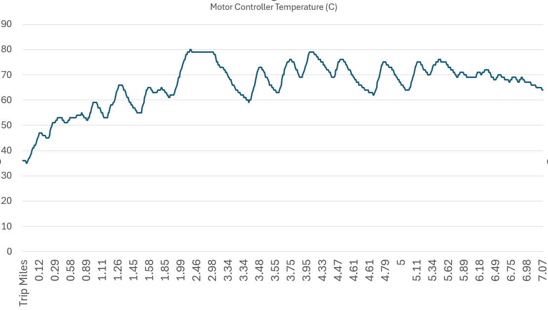 Moin - die Brammos schreiben ein Log-File auf einen USB-Stick. Kann man per Tool in CSV wandeln. Diese Temperatur wird schlicht mit "Motor Controller Temperatur" beschrieben. Motortemperatur wird auch geloggt, ist aber separat und habe ich nicht dargestellt. Wo der Fühler sitzt, das weiß ich nicht - ich gehe aber davon aus, dass es irrelevant ist, da ja sowohl der ursprünglich verbaute als auch der ausgetauschte Controller ein gleiches Verhalten aufzeigen.