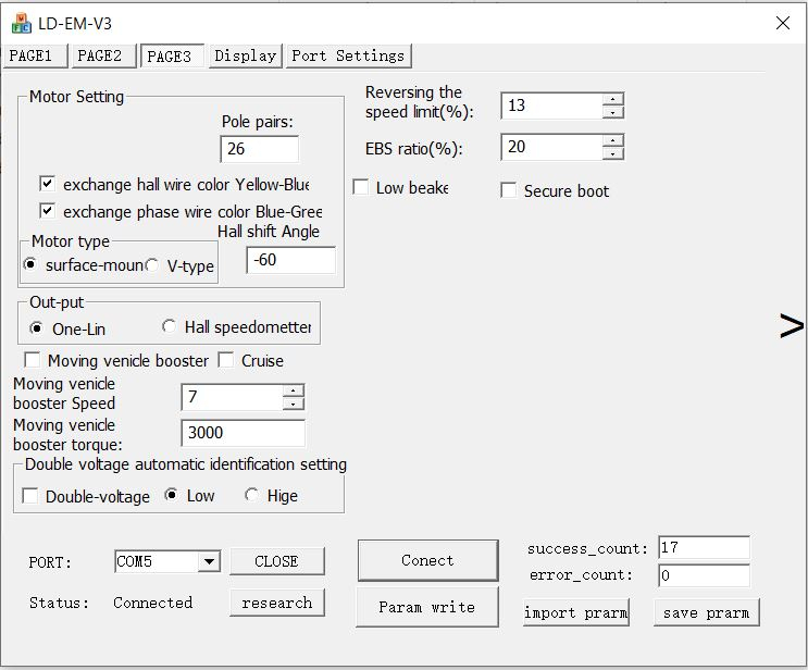 Halls topfen, Rückwärts gang, niedrige Bremse 0V, Gas (0-5V), hohe Bremse 12V, Zündung, Einleitungs-/Hallmeter-Draht, Programm hafen, Drei-Gang, parkplatz, Regen ladung, Fluss schwächen Strom, Temp-Sensor.