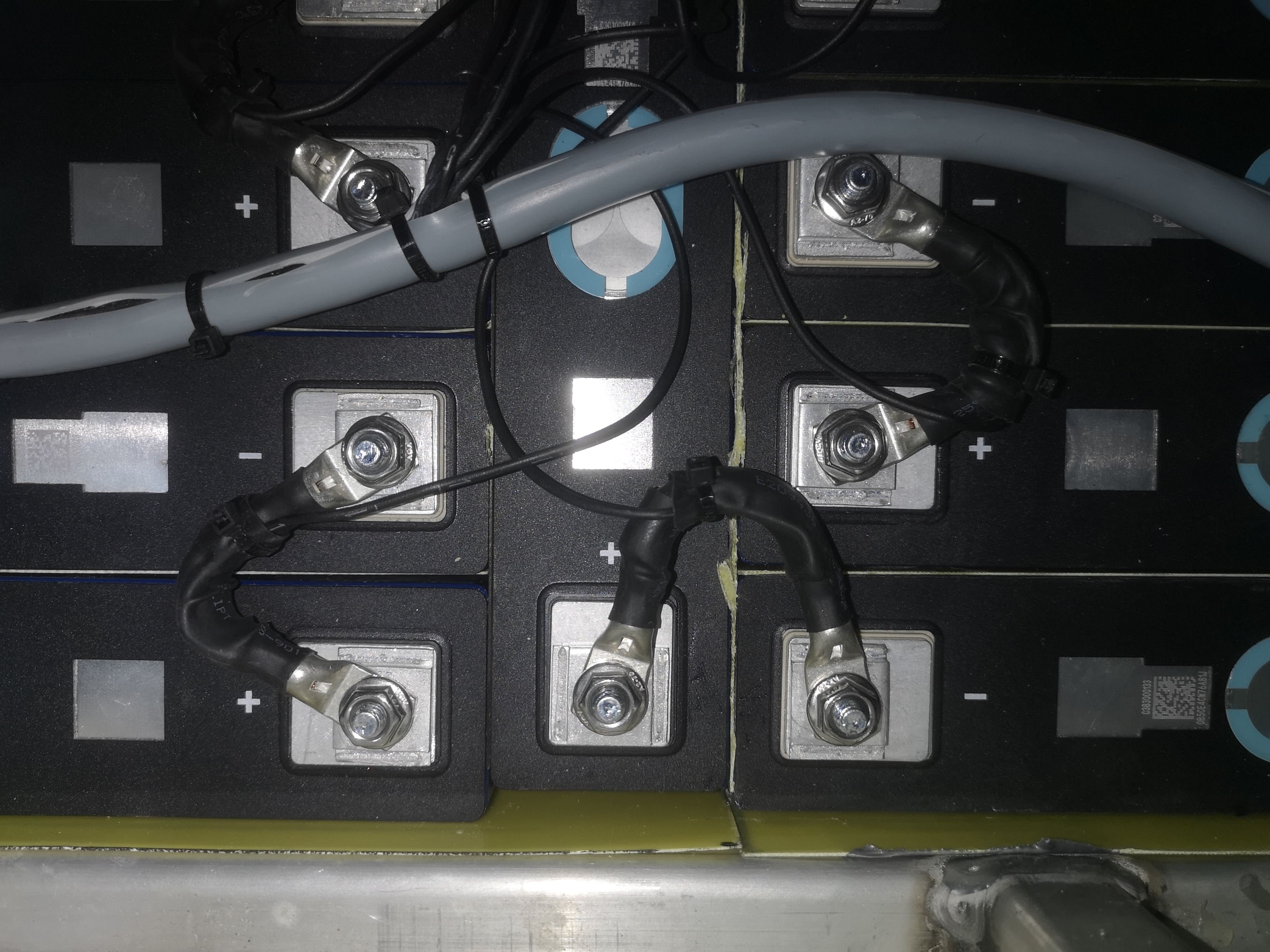 Die flexiblen Zellverbinder habe ich selber gecrimpt. Für die BMS-Kabelage habe ich Lapp-Kabel genommen, deren einzelne Adern durchnummeriert sind (15+Masse).