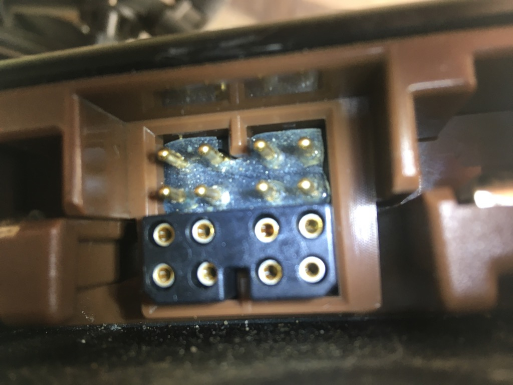 Was den Verdacht jetzt doch wieder auf den PowerTank und seine Verkabelung leitet, die ich ja schon entfernt hatte. Dabei ist ihm eine äußerst kuriose, gelartige "Dichtung" aufgefallen, welche die männlichen Datenpins des großen braunen Anderson SB smart Steckers umgibt: .