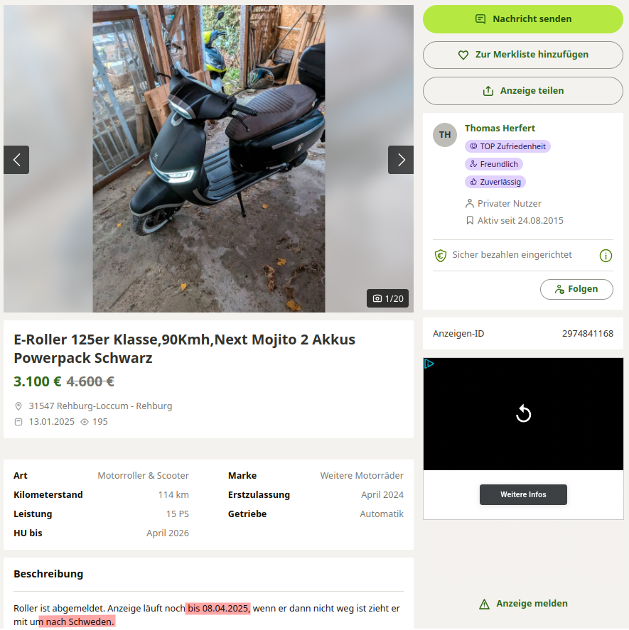 Re: Next Mojito (125er Roller) mit 8 kWh-Akku für 3.100 € gebraucht