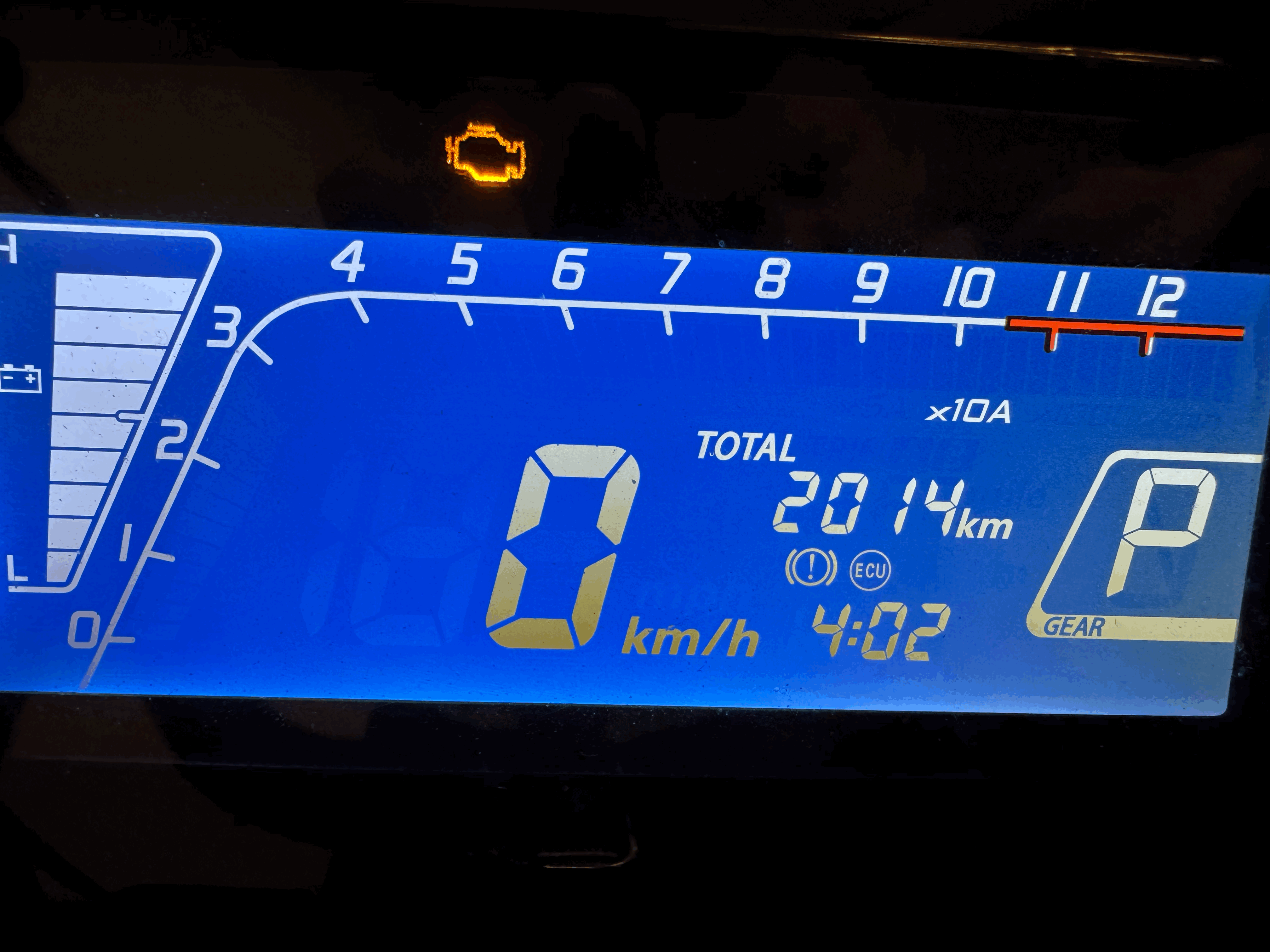 Jetzt war es eine Fehlermeldung im Display, verbunden mit einem hupenden Warnton: es leuchtet das Motorsymbol im Display, zusätzlich noch eine Meldung "ECU". Fährt keinen Meter.