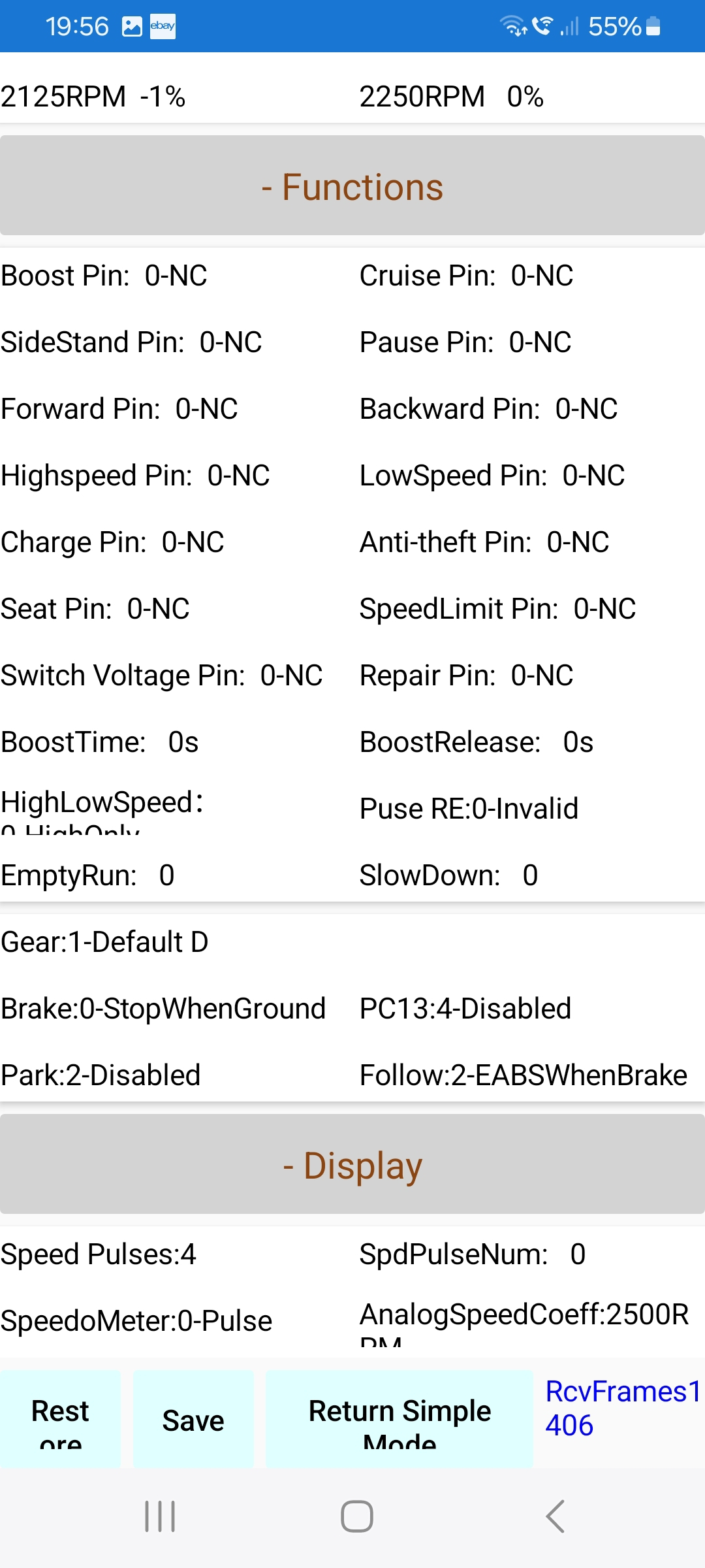 3. Möglich, habe ich aber nicht bemerkt das die Reku über den Bremshebel aktiviert wird. Aktuell habe ich alle RPMs mit 100% hinterlegt. Wie geschrieben ist die Reku so gering das praktisch eh immer dazu bremsen musst. Möglicherweise sind auch die Stop und MaxBackCurrent Werte zu niedrig für die Wildfire aber ehrlich gesagt traue ich mich nicht die zu erhöhen ohne das ich da von einer gescheideren Instanz was dazu gehört habe.