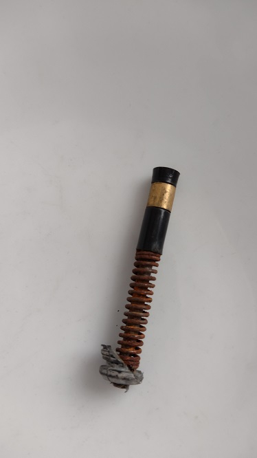 Die "Schraube", die sich da gelöst hat, sieht aus wie eine Lösung, die einen Bremslichtschalter betätigt. Dafür spricht die Gummikappe, und die Feder. Da würde ich jetzt aber vermuten, dass da irgendwas wegkorrodiert, so dass sich die Schraube gelöst hat.