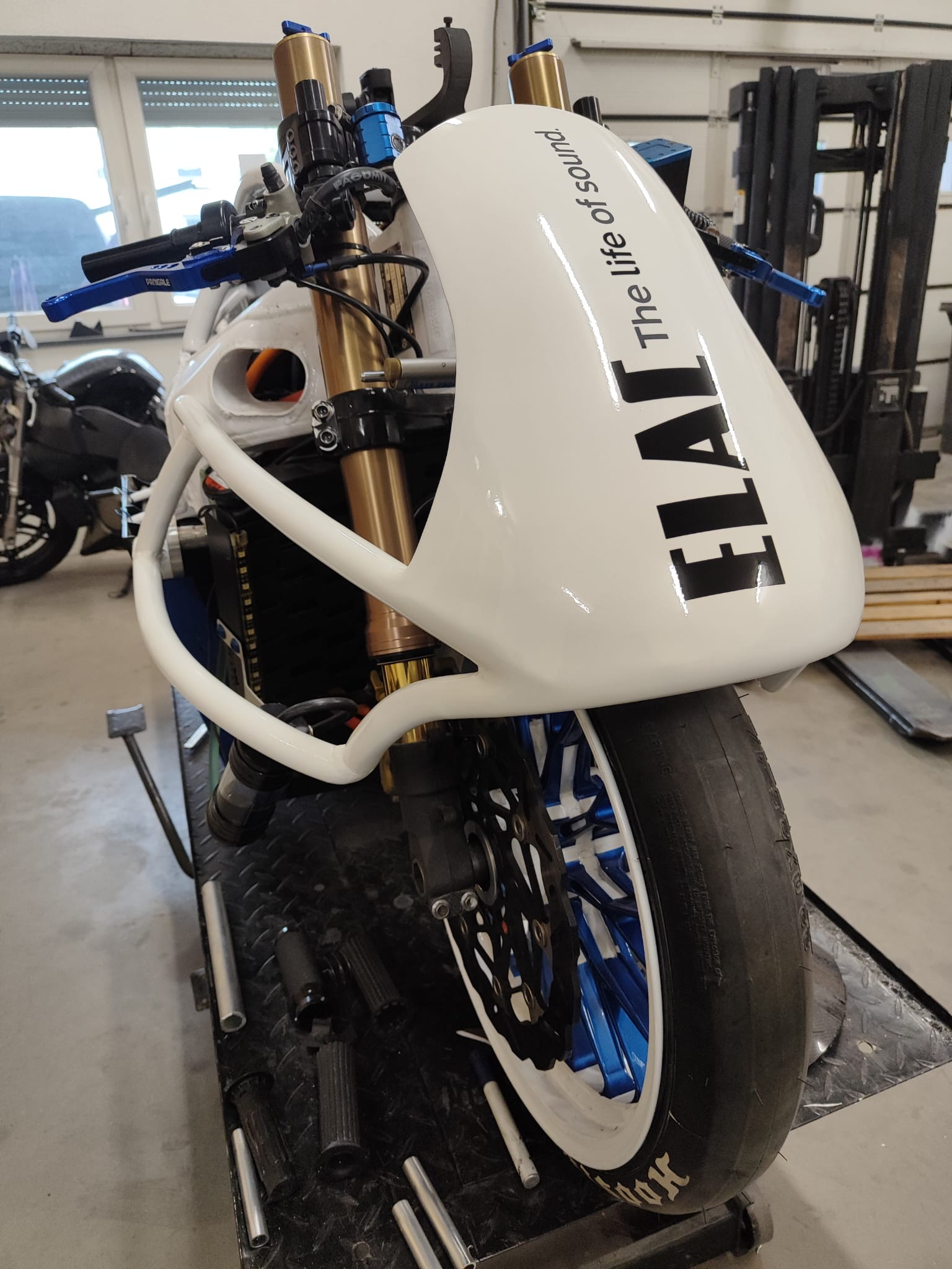 Da der Renner zu kopflastig ist, hebt das Vorderrad bestimmt selten ab, sollte es doch mal abheben wird es nicht sofort still stehen.
